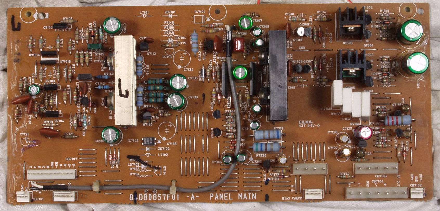| C−2B.修理後 Lドライブ基板 初段FET2個、電解コンデンサー19個交換 | |