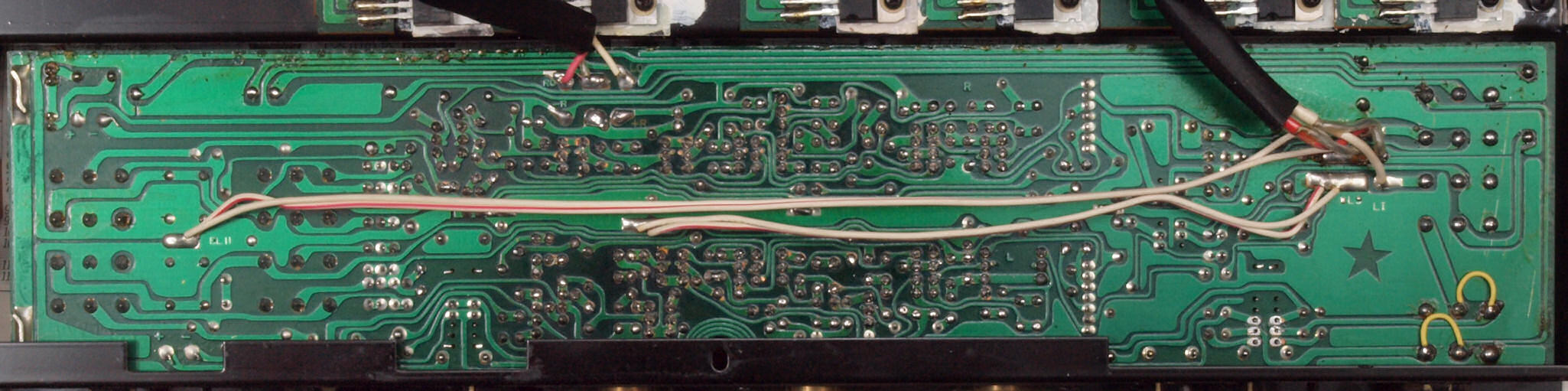| C74. 修理(半田補正)後 ToneControl基板裏 。 全ての半田をやり修す。 | ||||||||||||||||||||||||||||||||||||||||||||||