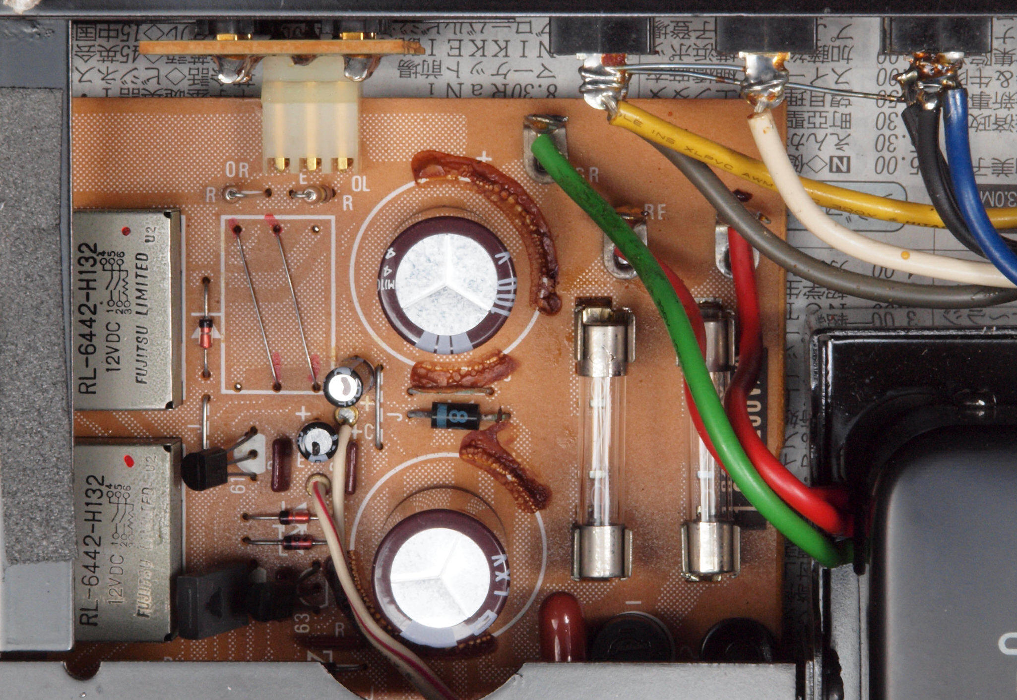 交換した電解コンデンサー2個は市販品です。−側の仕様品ではありません!