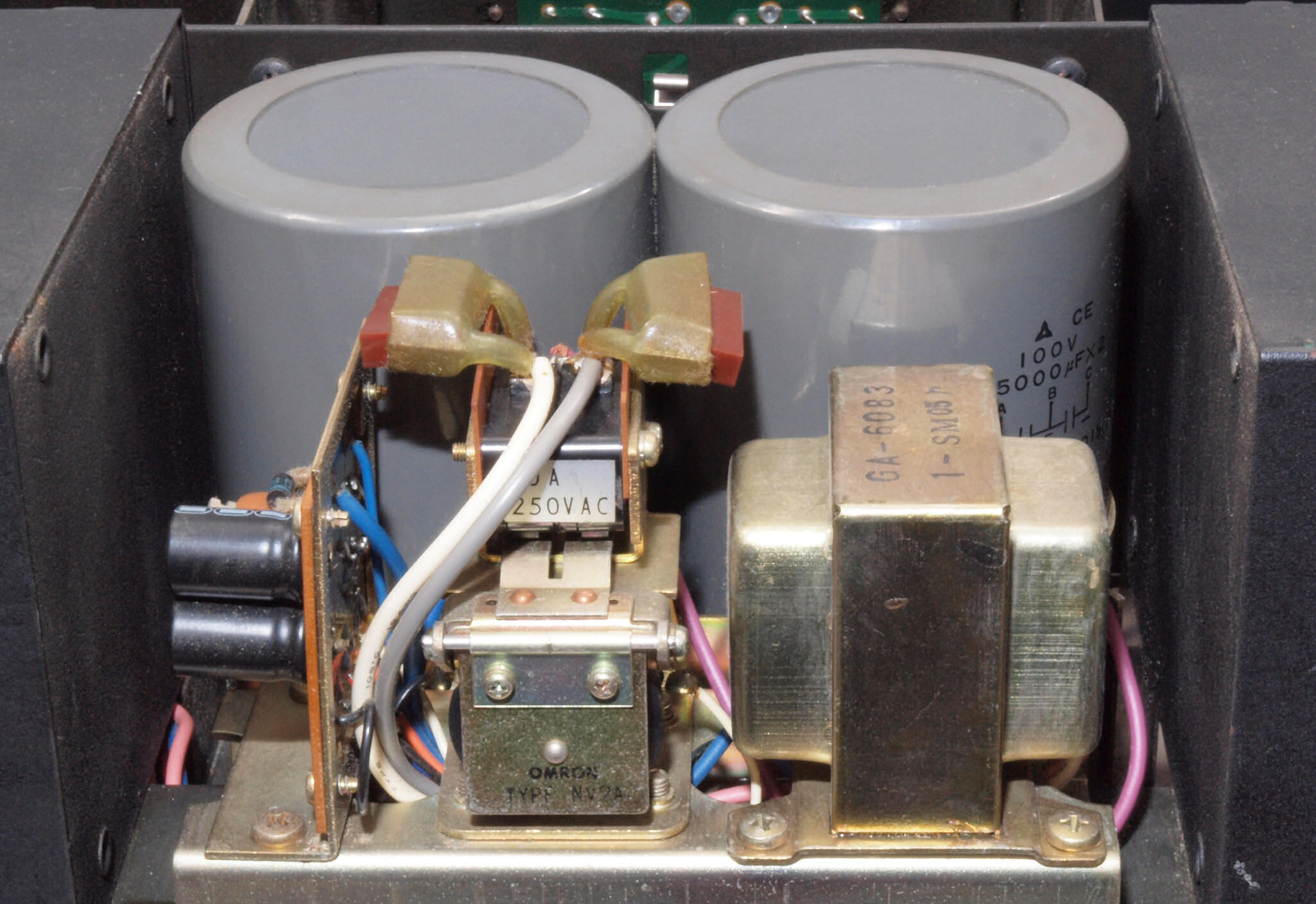 パワー段用電源 L・R独立のトランス及びケミコン(15,000μF×2)×両ch