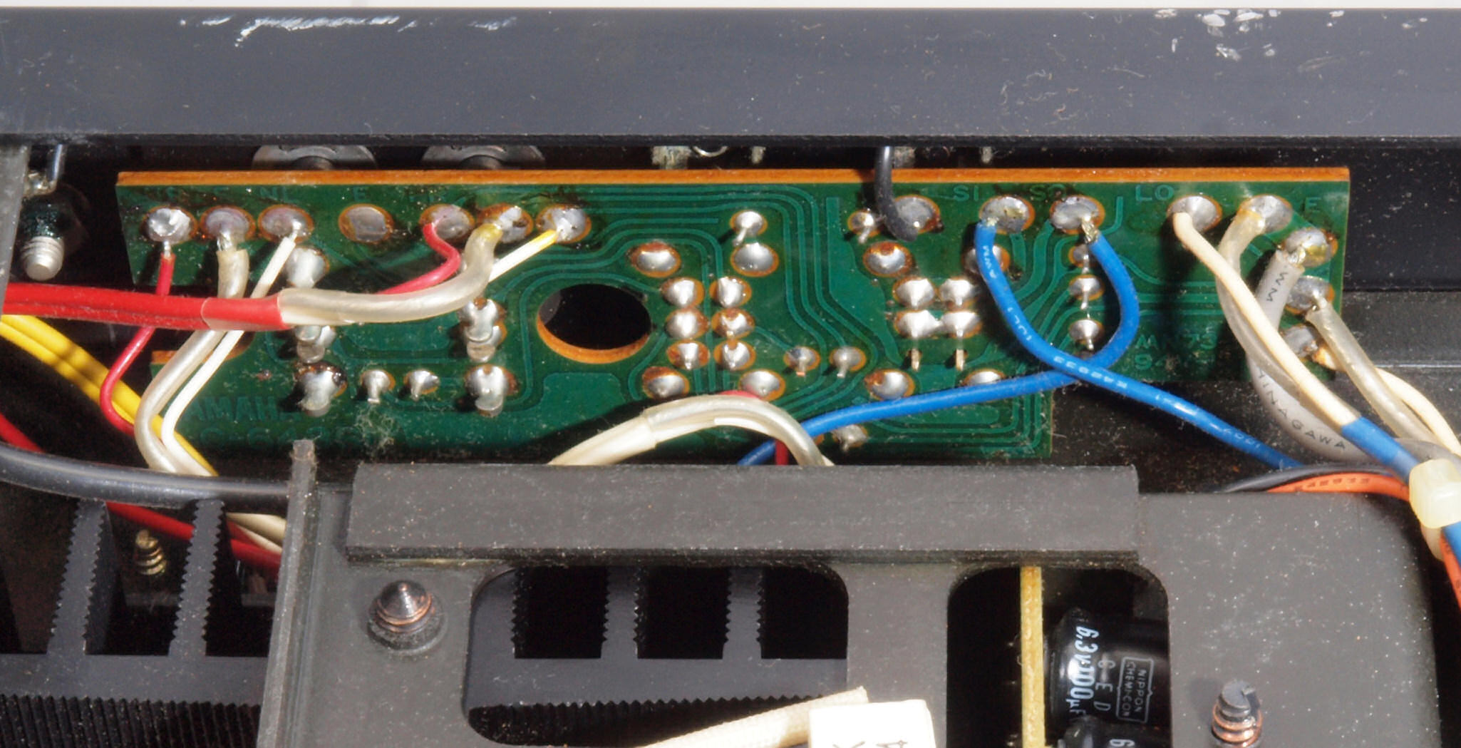 CL1. 修理前  SIT(静電誘導型トランジスター)用ブロック電解コンデンサー下周り。