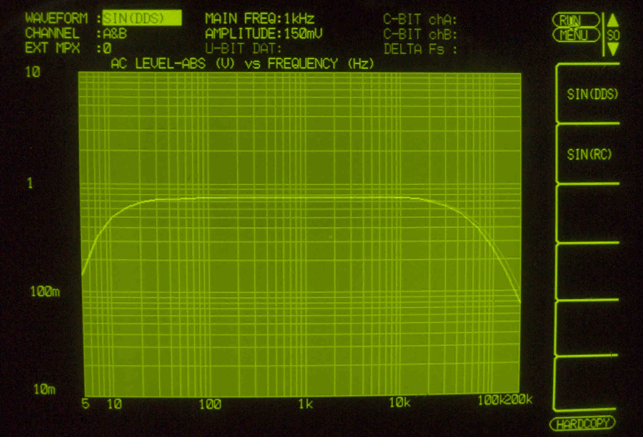 | F. 上位測定器による 調整・測定。 画像をクリックすると、大きく(横幅2050ドット)表示されます。 F0. 下のオーディオアナライザーVP−7732Aで自動測定。 |