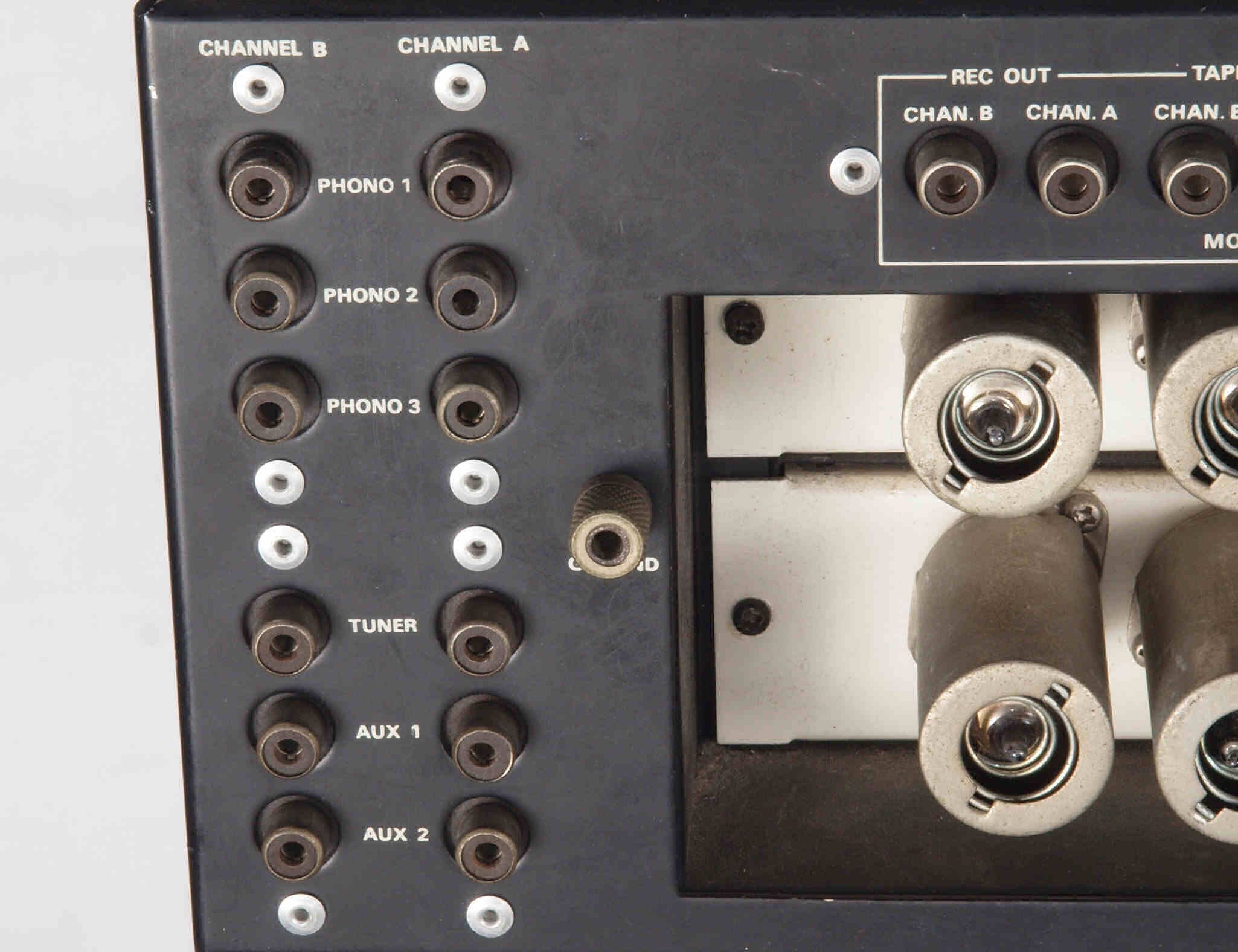 | C81. 修理前 出力RCA端子+テープ入出力RCA端子。 | ||||||||||||||||||||||||||||||