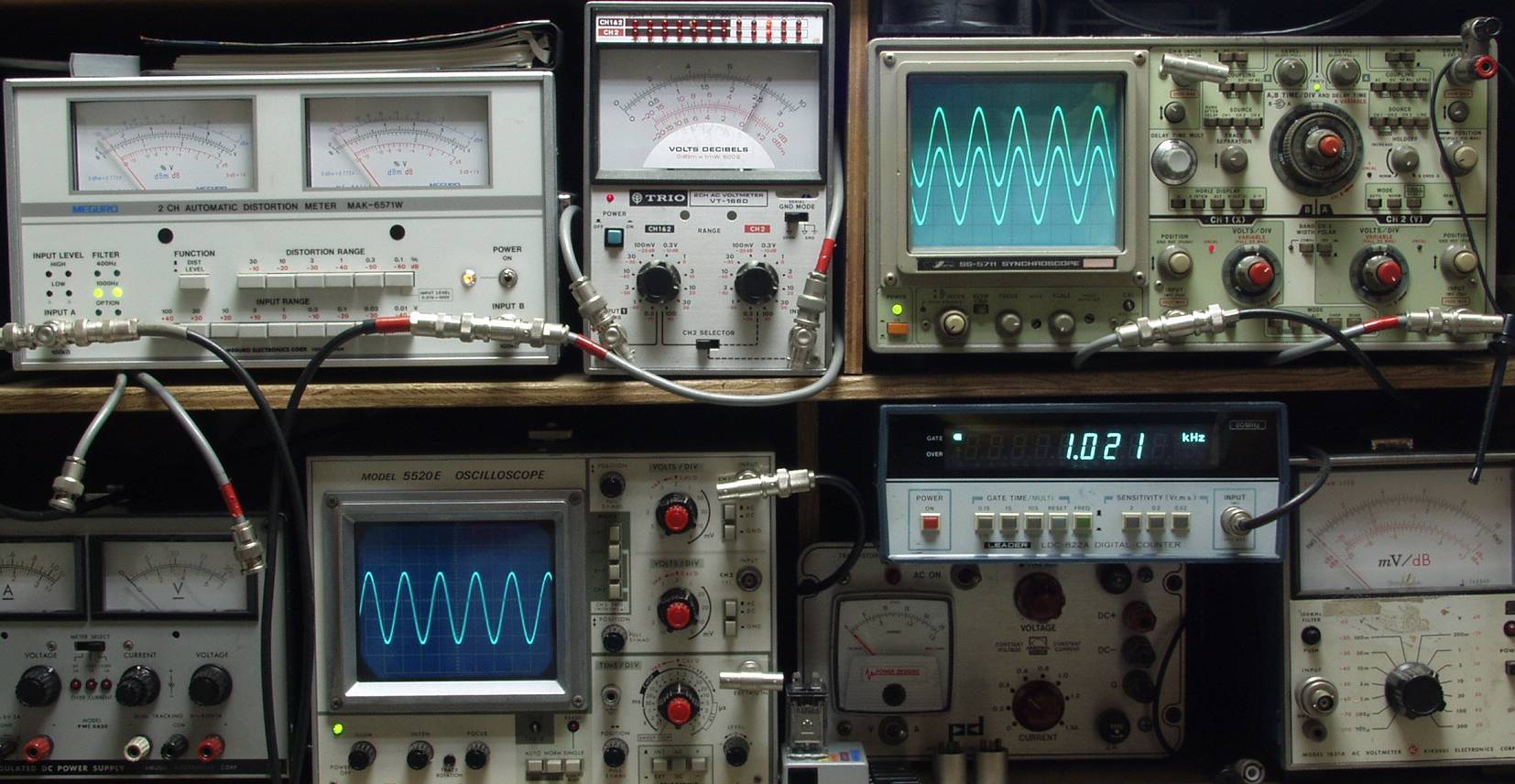 上左オーディオ発振器より400HZ・1KHZの信号を出す(歪み率=約0.003%)