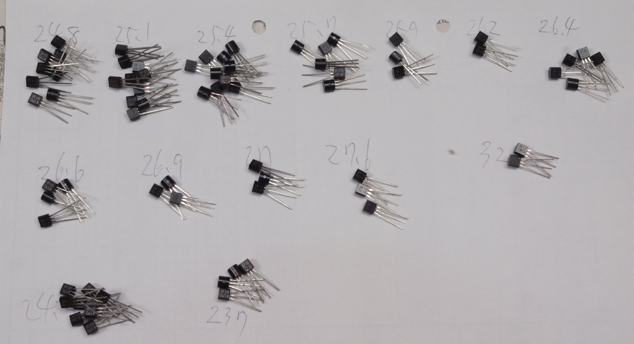 A91. 点検中 FET(電界効果トランジスター)の測定、選別中。