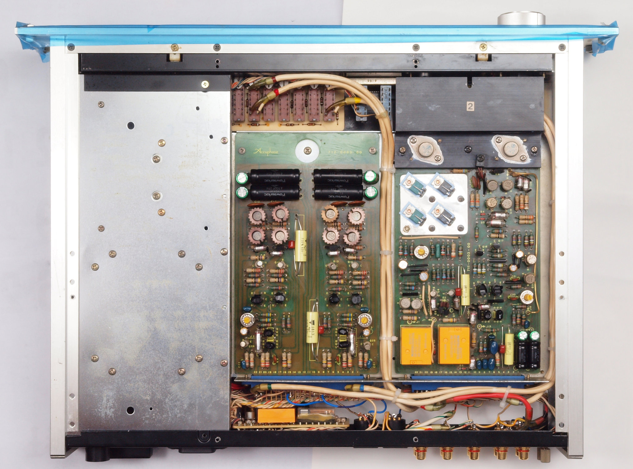 A72. 点検中 R側・L側−AMP基板の高価な貫通電解コンデンサー