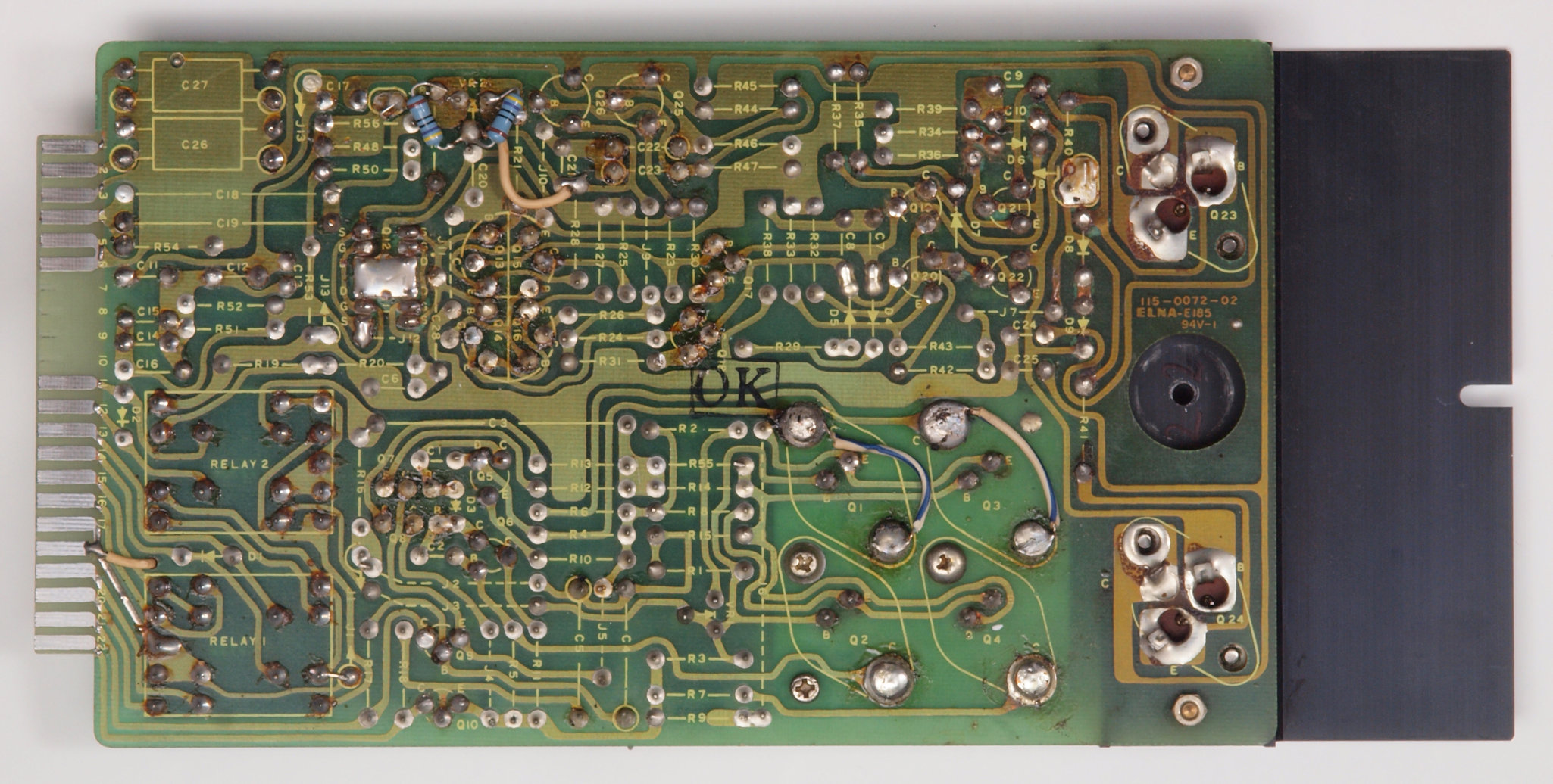 C25. 修理(半田補正)後 R側−AMP基板裏  全ての半田をやり修す