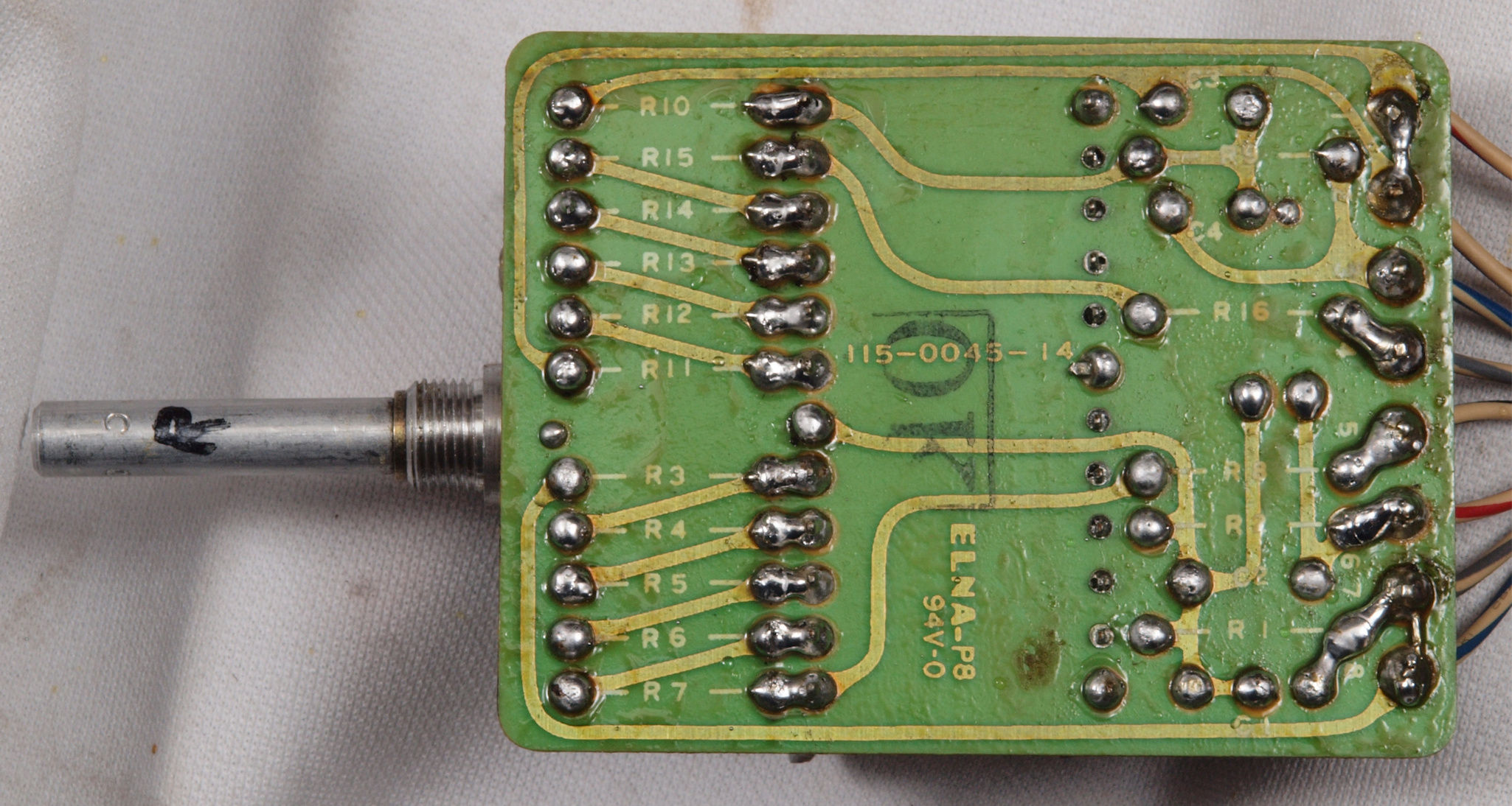 C14. 修理(半田補正)後 R側EQ_AMP基板裏。 半田を全部やり直す。