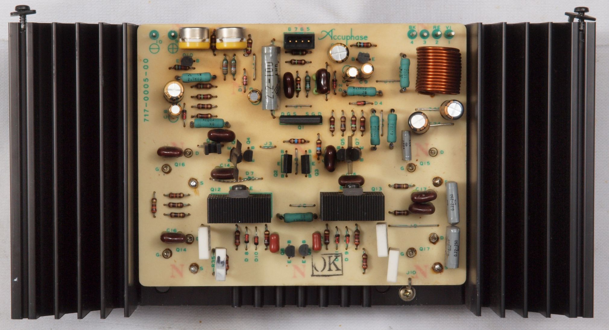初段複合FET(電解効果トランジスター)4個、TR(トランジスター)24個、半固定VR2個、電解コンデンサー6個交換。