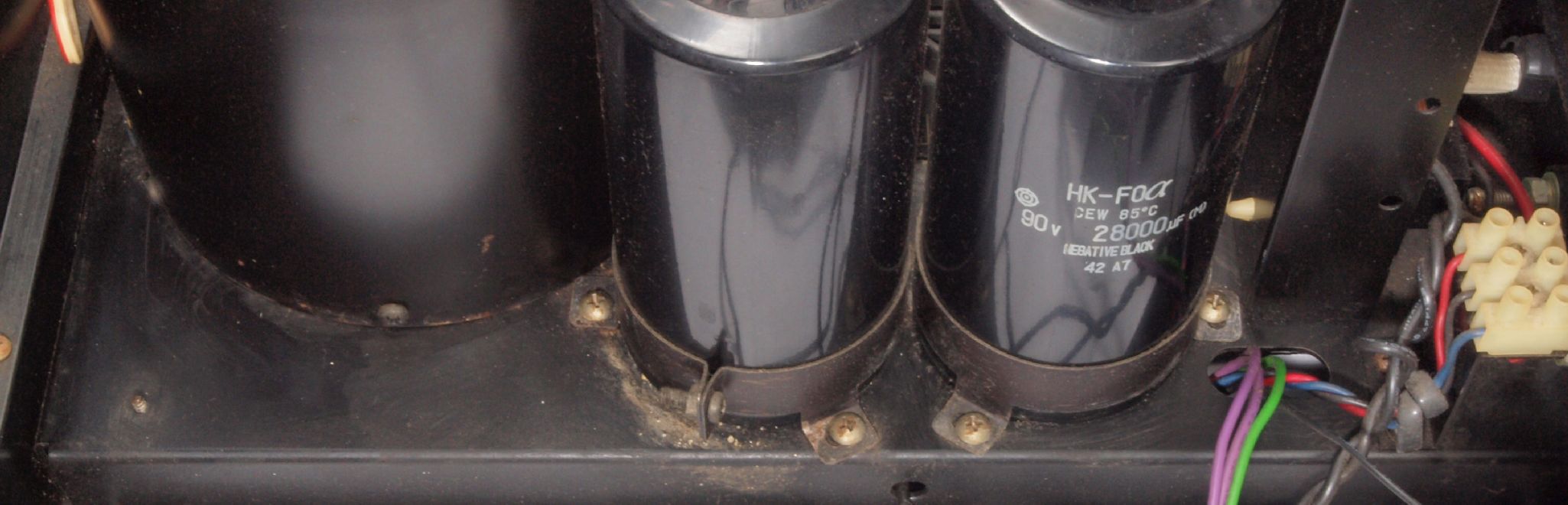 | A71. 点検中 手持ちONKYO オンキヨー(株) M−509用電源ブロック電解コンデンサー。ネジ端子なので半田付の温度上昇無。容量=3万μF/使用電圧90WV。POA−3000ZR. 2台目。 修理用に準備したがユーザーの都合で、今回交換見送り。 | ||||||||||||||||||||||||||||||||||||||||||||||