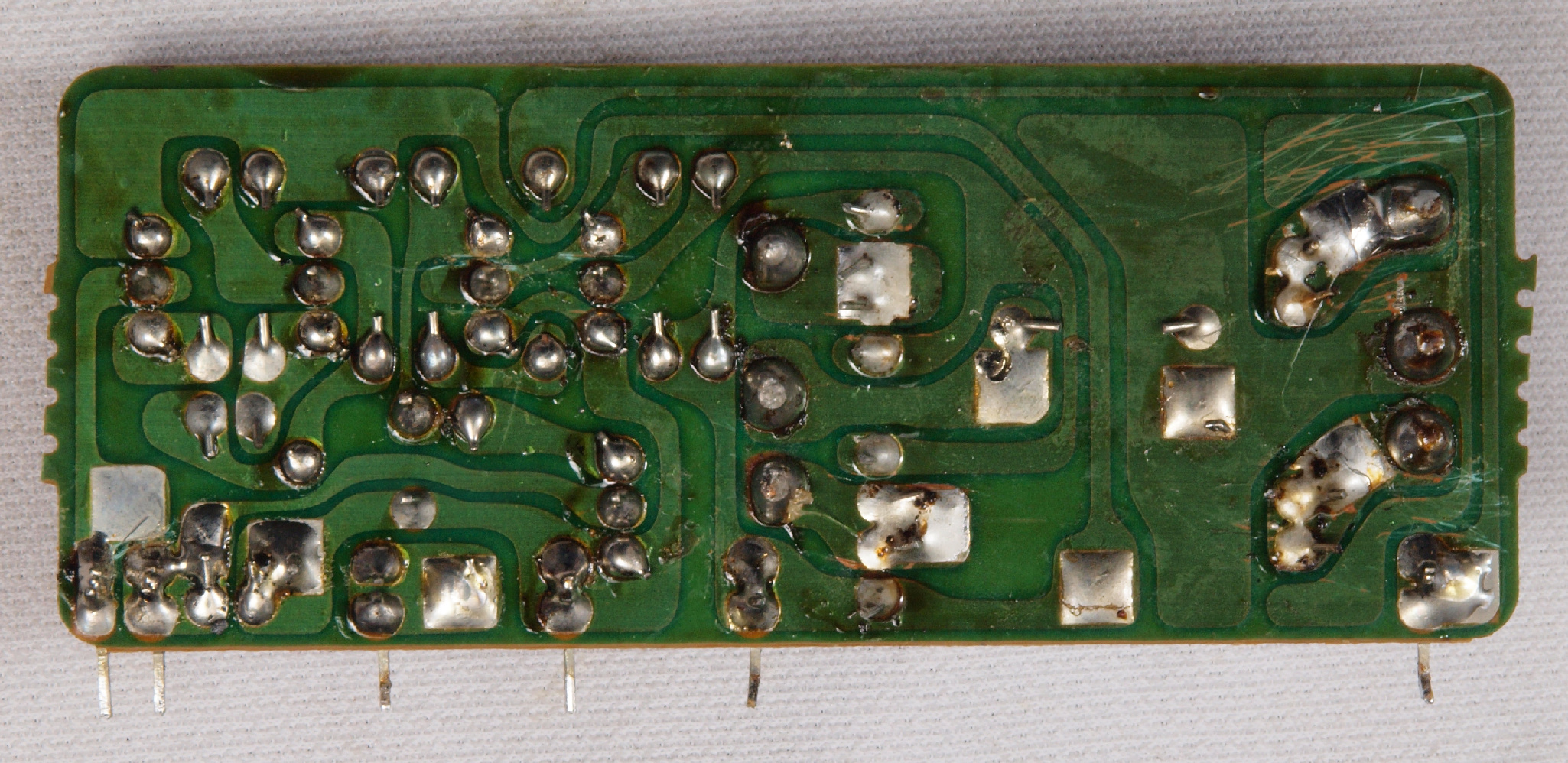 | C35. 完成電源・コントロール基板裏。 余分なフラックスを落として、コート液を塗る。 | ||||||||||||||||||||||||||||||||||||||||||||||||||||||||
