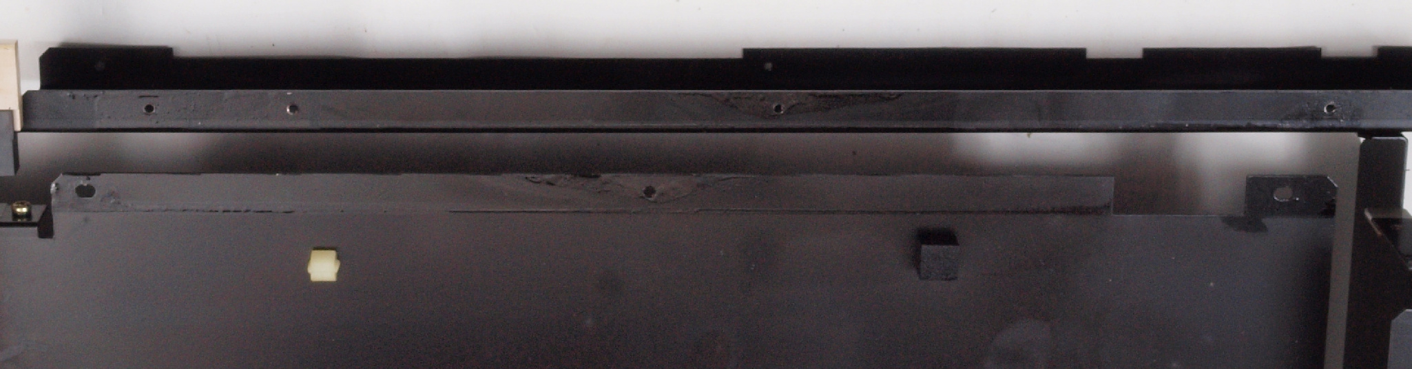 | C03. 修理中 基板を全て取り除いたシャーシを下から見る。基板とのクション材は劣化してボロボロ! | ||||||||||||||||||||||||||||||||||||||||||||||||||||||||