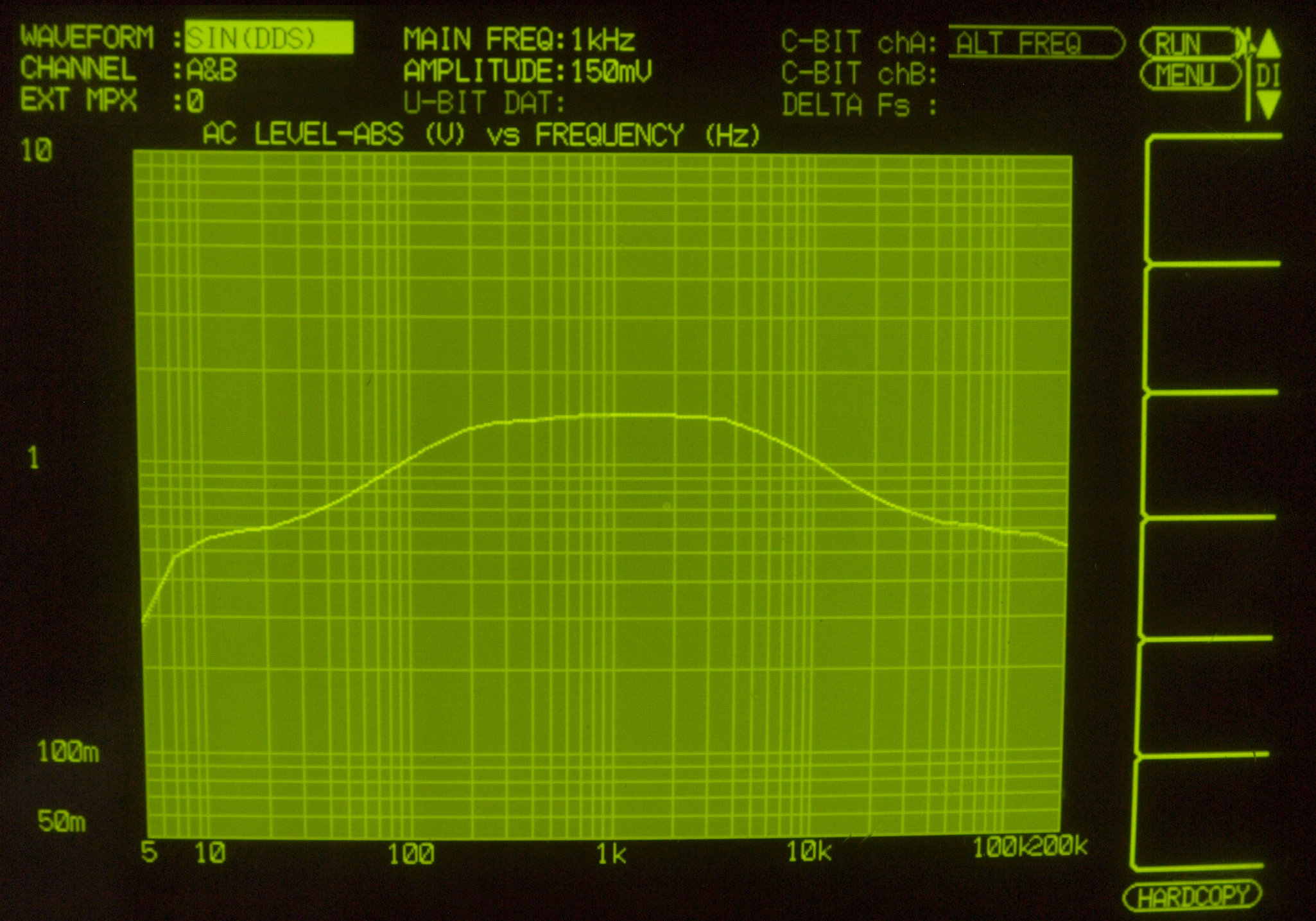 | F. 上位測定器による 調整・測定。 画像をクリックすると、大きく(横幅2050ドット)表示されます。 F0. 下のオーディオアナライザーVP−7732Aで自動測定 |