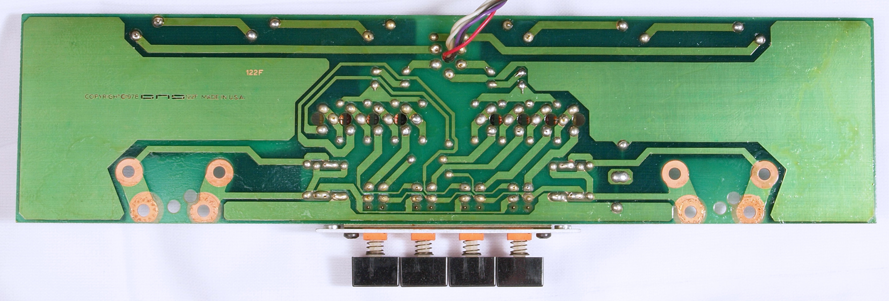 | A42. 点検中 B側−AMP基板。 コネクターが折られ、半田付けされた配線。 及び裏付けされた抵抗。 | ||||||||||||||||||||||||||||