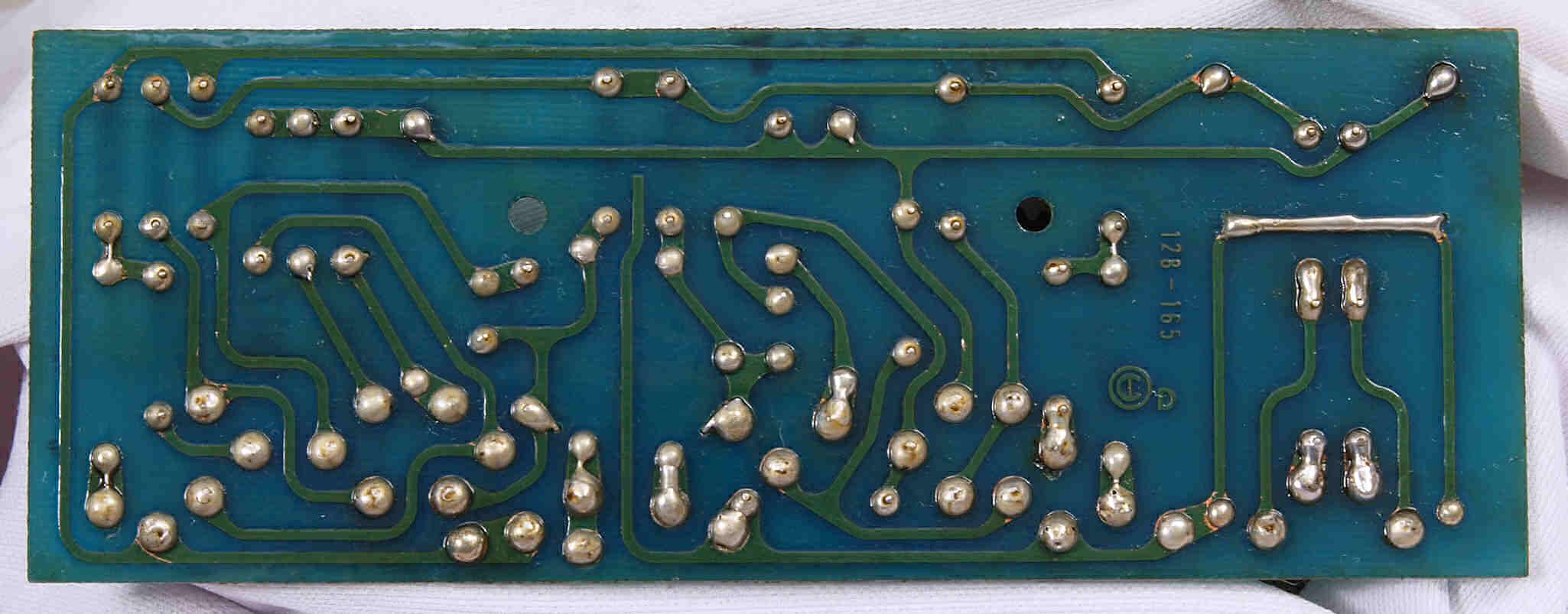 | C34. 修理(半田補正)後 プリAMP基板裏。 半田を全部やり直す。 | ||||||||||||||||||||||||||||||