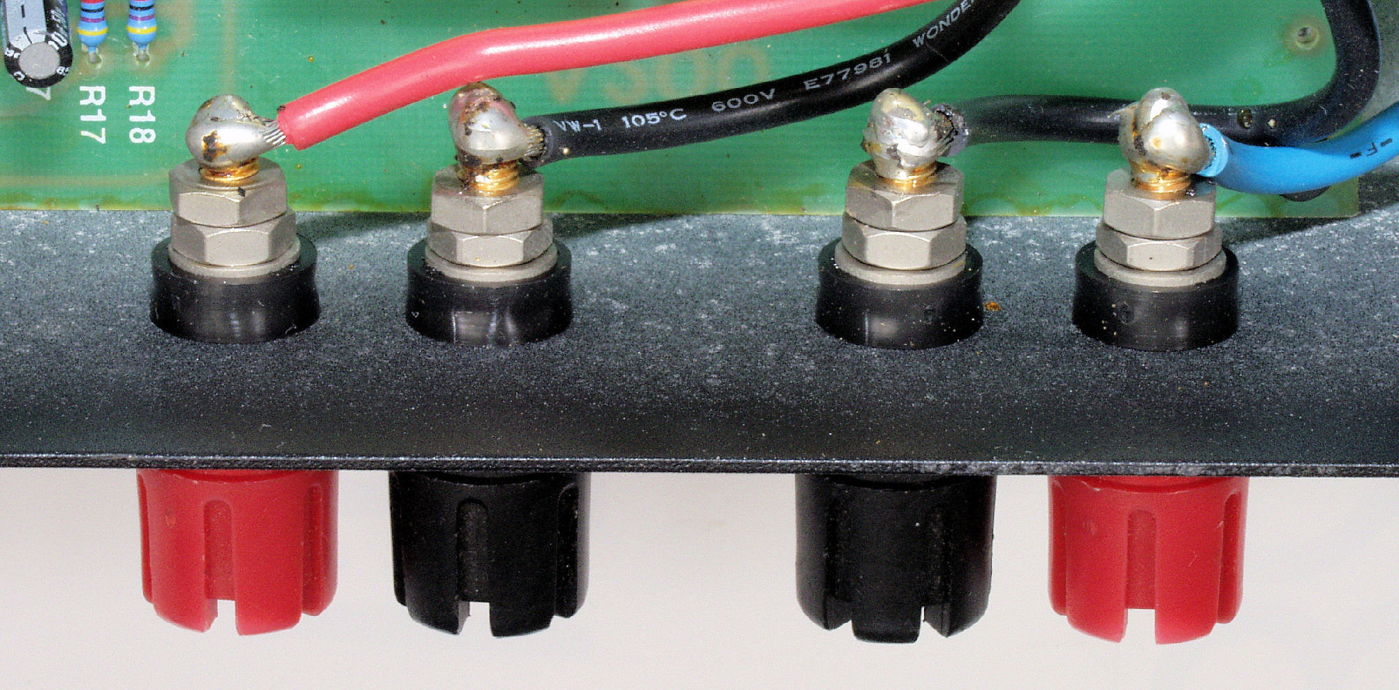 | A42. 本体点検中 SP接続端子裏。 2重ナット(Wナット)は真面目職人作業、配線も絡めて半田。 | ||||||||||||||||||||