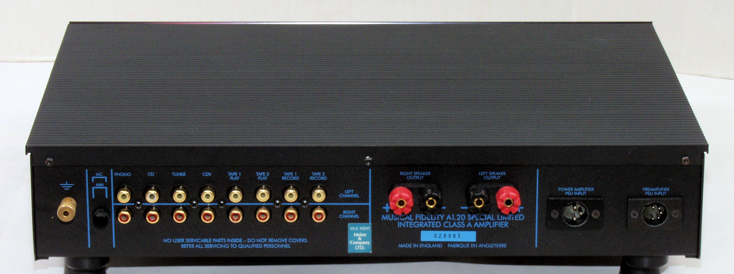 E. 調整・測定。 F. 修理費 105,000円 オーバーホール修理。 終段交換の場合は別途。 S. Musical Fidelity A1.20 Special Limited の仕様(マニアル・カタログより) |