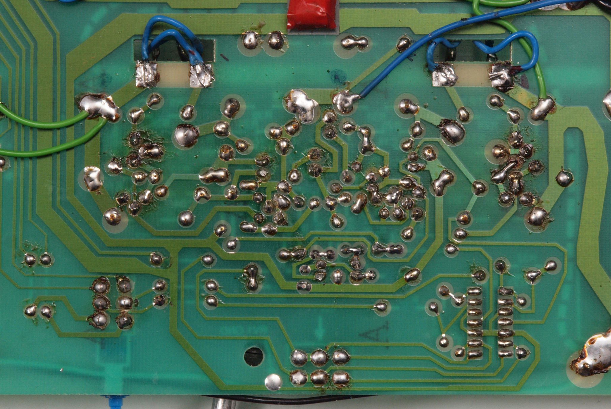 | C64. 修理(半田補正)後 MC基板裏、 半田を全部やり直す。 フイルムコンデンサー1個追加。 | ||||||||||||||||||||