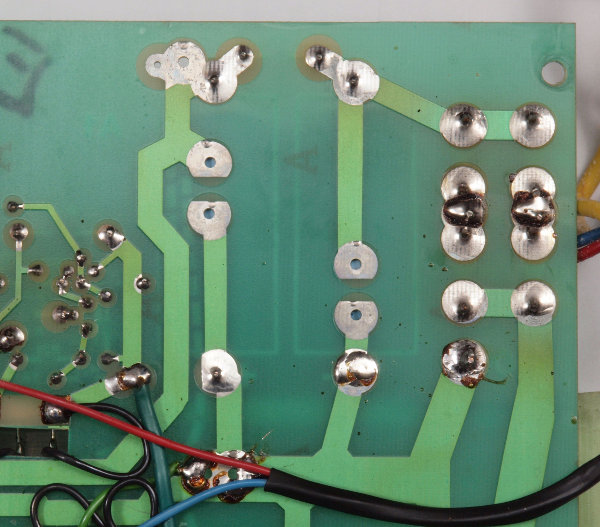 | C84. 修理(半田補正)後 −側電源基板裏、 半田を全部やり直す。 | ||||||||||||||||||||