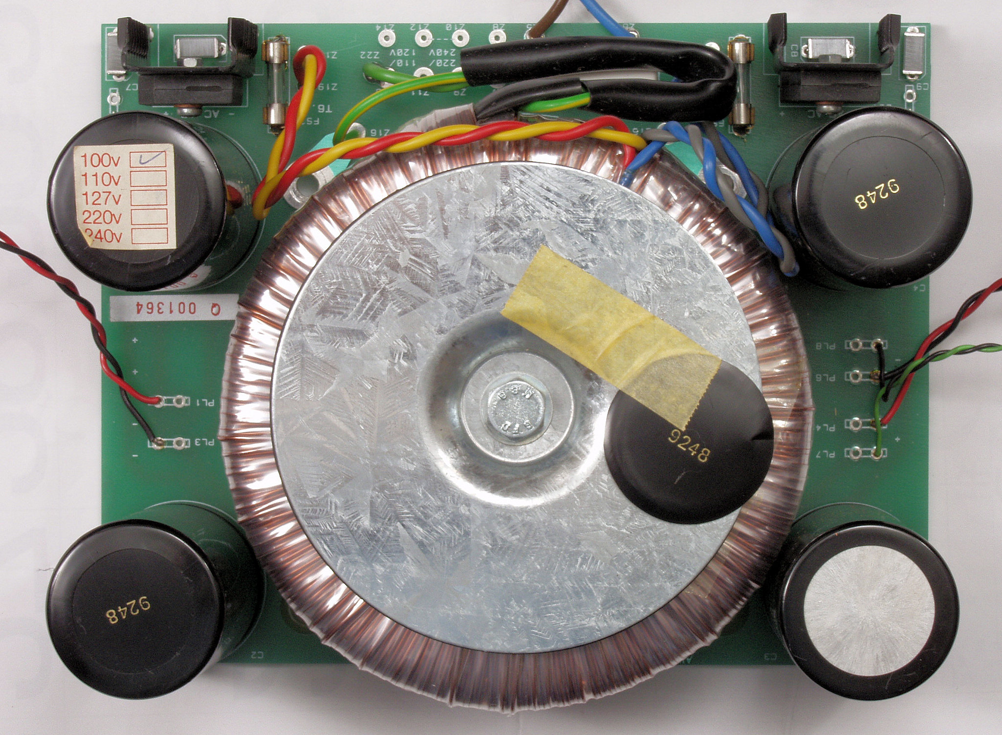 | C34. 修理後 電源基板。 AMP基板への配線コネクター、熱収縮チューブで絶縁・補強する。 | ||||||||||||||||||||||||||||