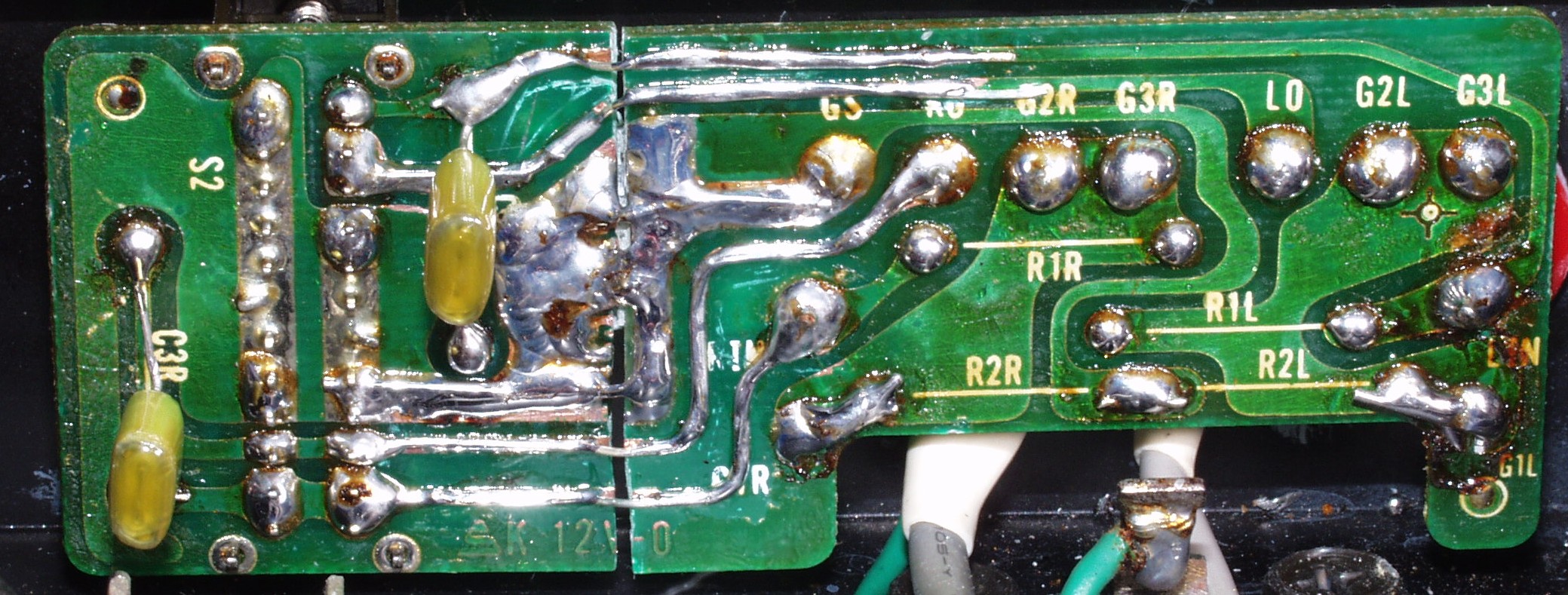 C1C2. 修理中 Rドライブ基板裏 錫メッキ線で補強して、リレー交換する