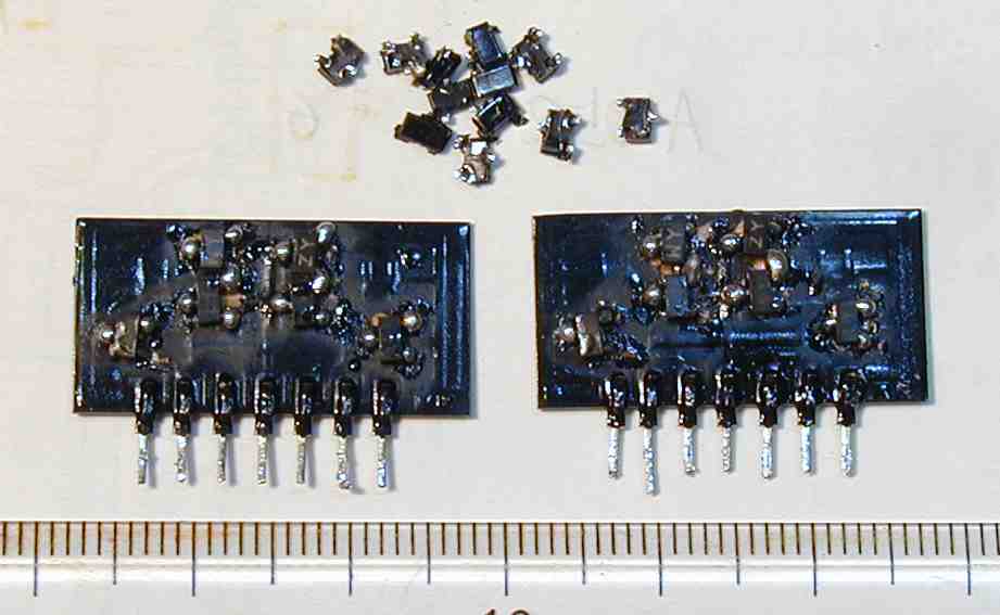 | 1. このAMPの心臓部モジュールの修理 面実装のTR(トランジスター)/抵抗の構成 |
