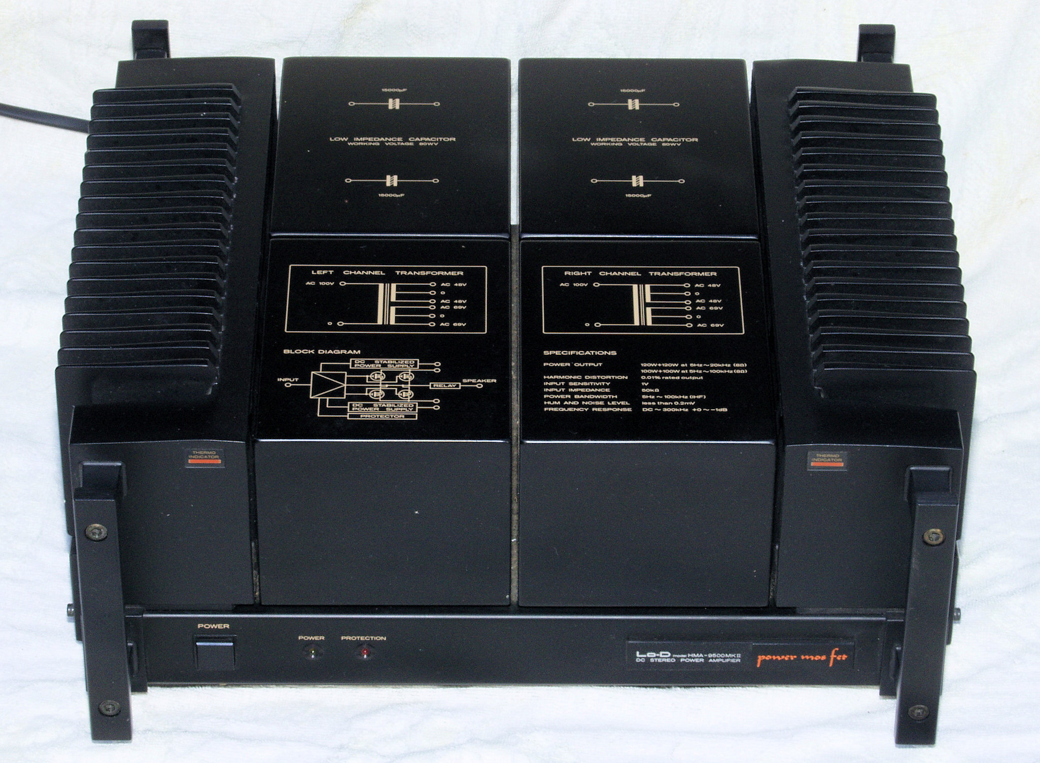 | 注意 このAMPはアースラインが浮いています。 AMPのシャーシにSPの線(アース側)やプリAMPのアースもも接続してはいけません。 RL−SPのアース線も接続(共通)してもいけません、+−の撚りのあるのも使用出来ません。 又、DC(directconnection)入力が可能ですが、絶対に使用しないこと=ここ参照 この「HMA−9500mkU. 32台目」は、過去の「HMA−9500mkU.40台」及び「HMA−9500. 25台」の頂点に立つ優等生です。 過去に大きな事故や故障が無く、終段FET(電界効果トランジスター)が最高の状態の為です。 |