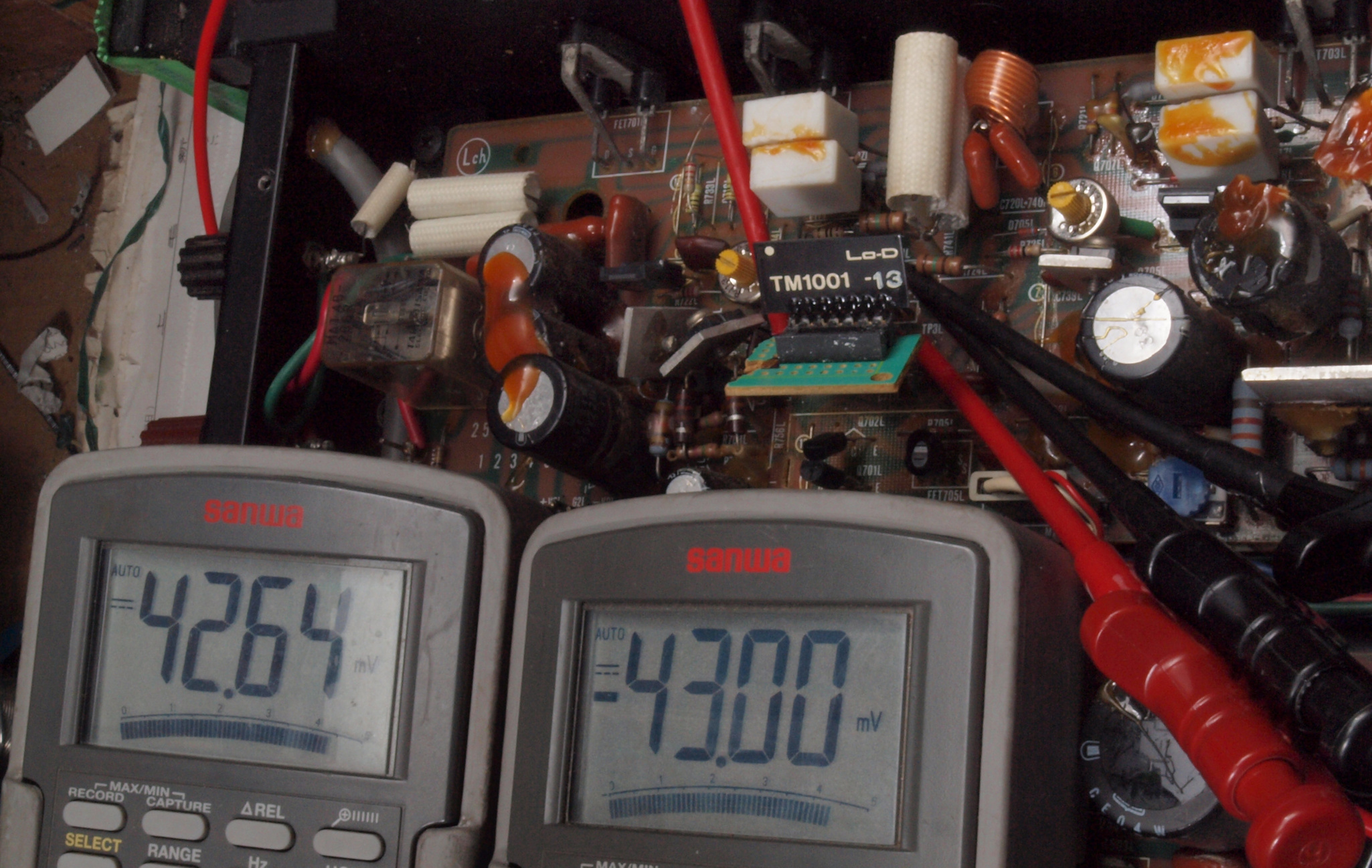 | C43. 修理中 RLモジュール裏。 TR(トランジスター)6個交換し、洗浄後軽くラッカーを吹く。 |