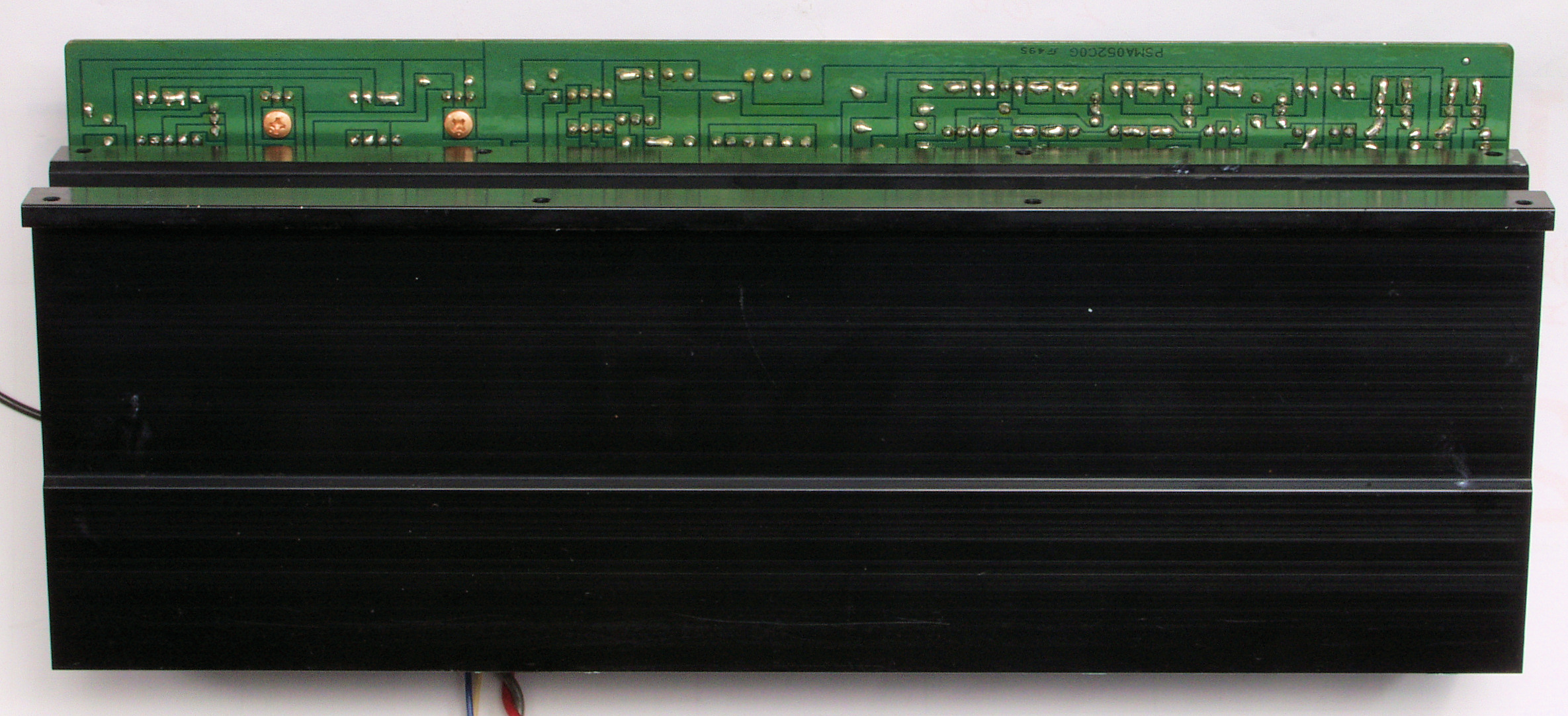 | A26. 点検中 右側終段アンプ基板の頭のビニールが後退した電解コンデンサー。 オーバーホールは「H*F*堂」で完了の事? |
