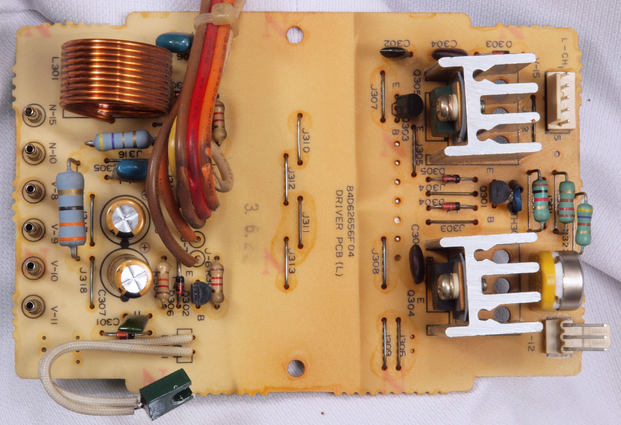 | CA1. 修理前 右側終段ドライブ基板。 | ||||||||||||||||||||||||||||||||||||||||||