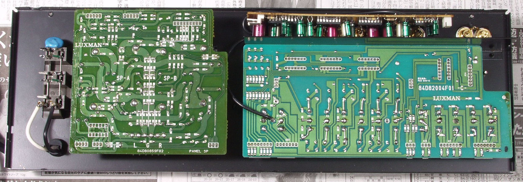 | C−8G.修理後 SP接続端子基盤 電解コンデンサー5個、SP接続リレー2個交換 | |