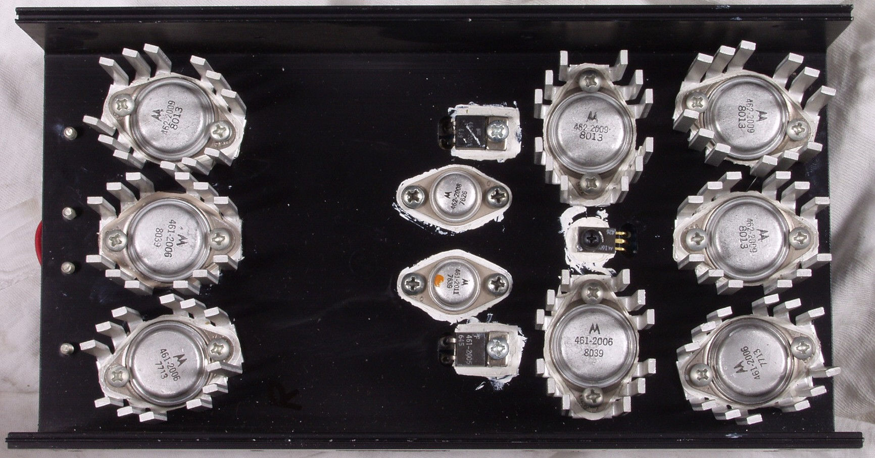 | C2A. 修理前 L側終段TR(トランジスター) ”×”が付いているのが死んでいる | ||||||||||||||||||||||||||||
