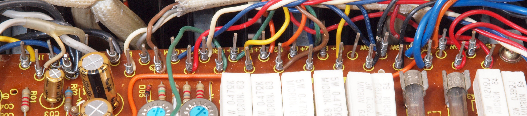 TR(トランジスター)6個、電解コンデンサー24個、フイルムコンデンサー2個、FET(電解トランジスター)2個交換