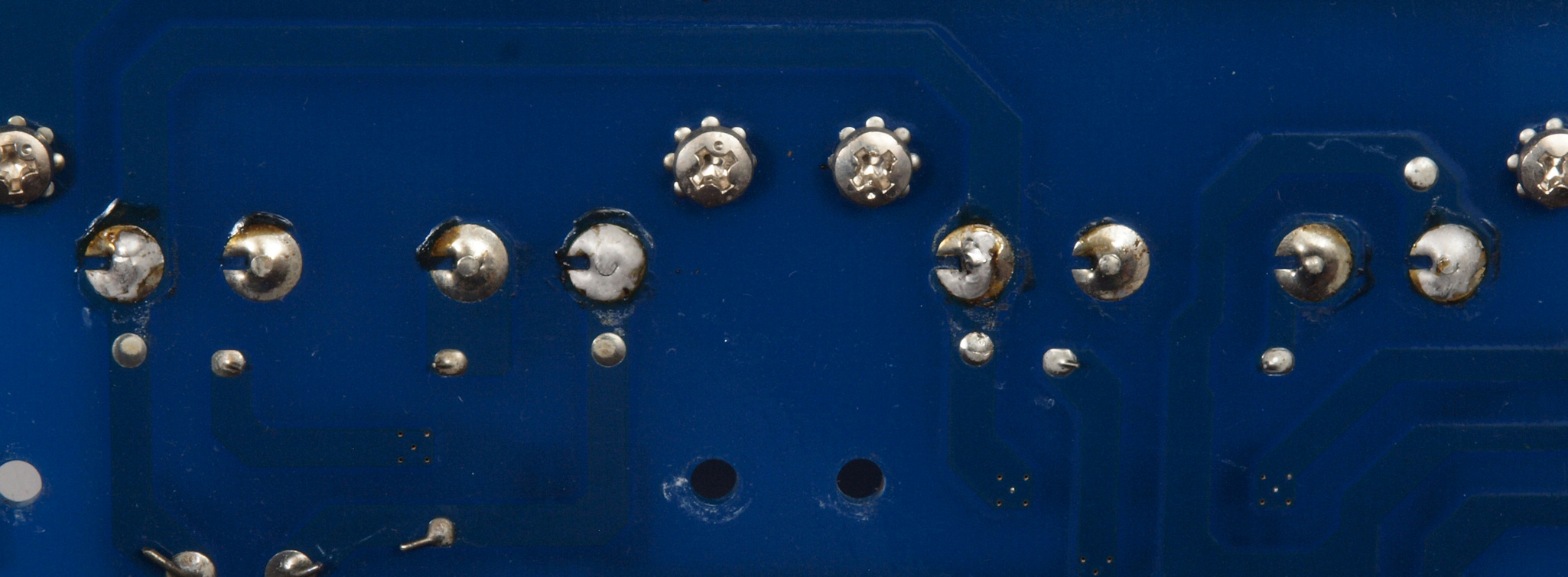 | C35. 修理中 DC−DCコンバーター基板裏。DC−DCコンバーターの出力端子の半田。 |