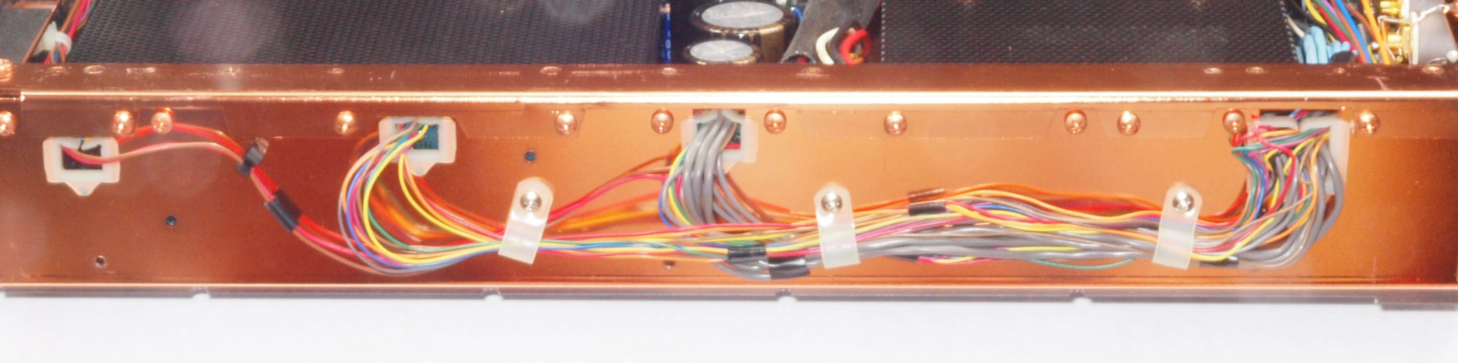 CA5. 修理中 後パネル裏SP出力接続取り付け部。SP接続端子に押され凹んでいる。