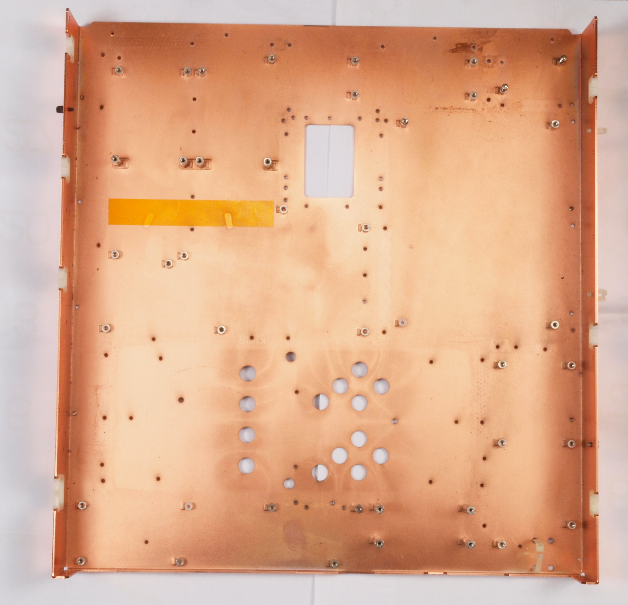 | CA5. 修理中 後パネル裏SP出力接続取り付け部。SP接続端子に押され凹んでいる。 |