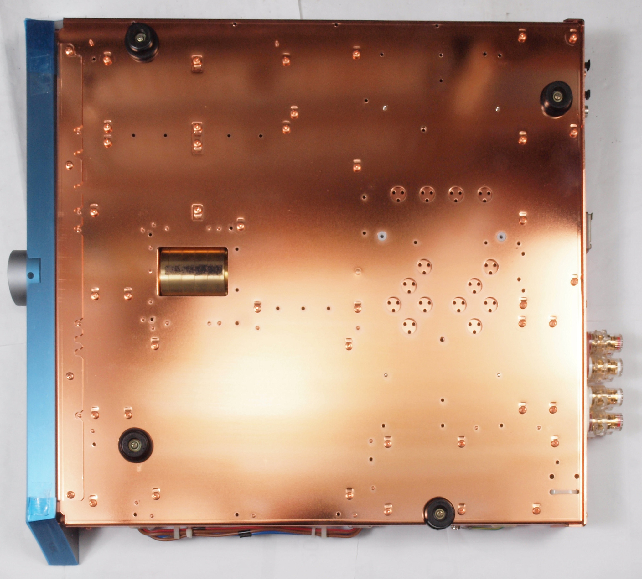 | C01. 修理中 部品・基板を取り去ったシャーシ裏。清掃後CRCで拭く。 |