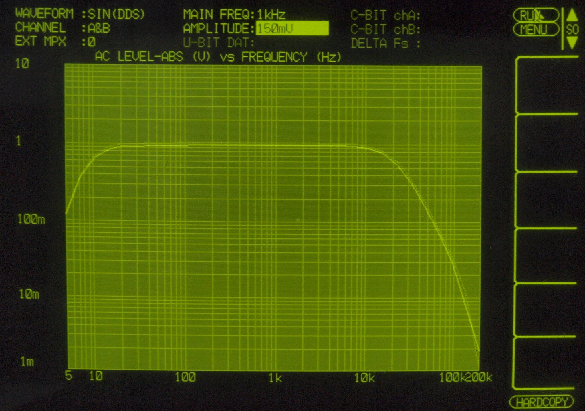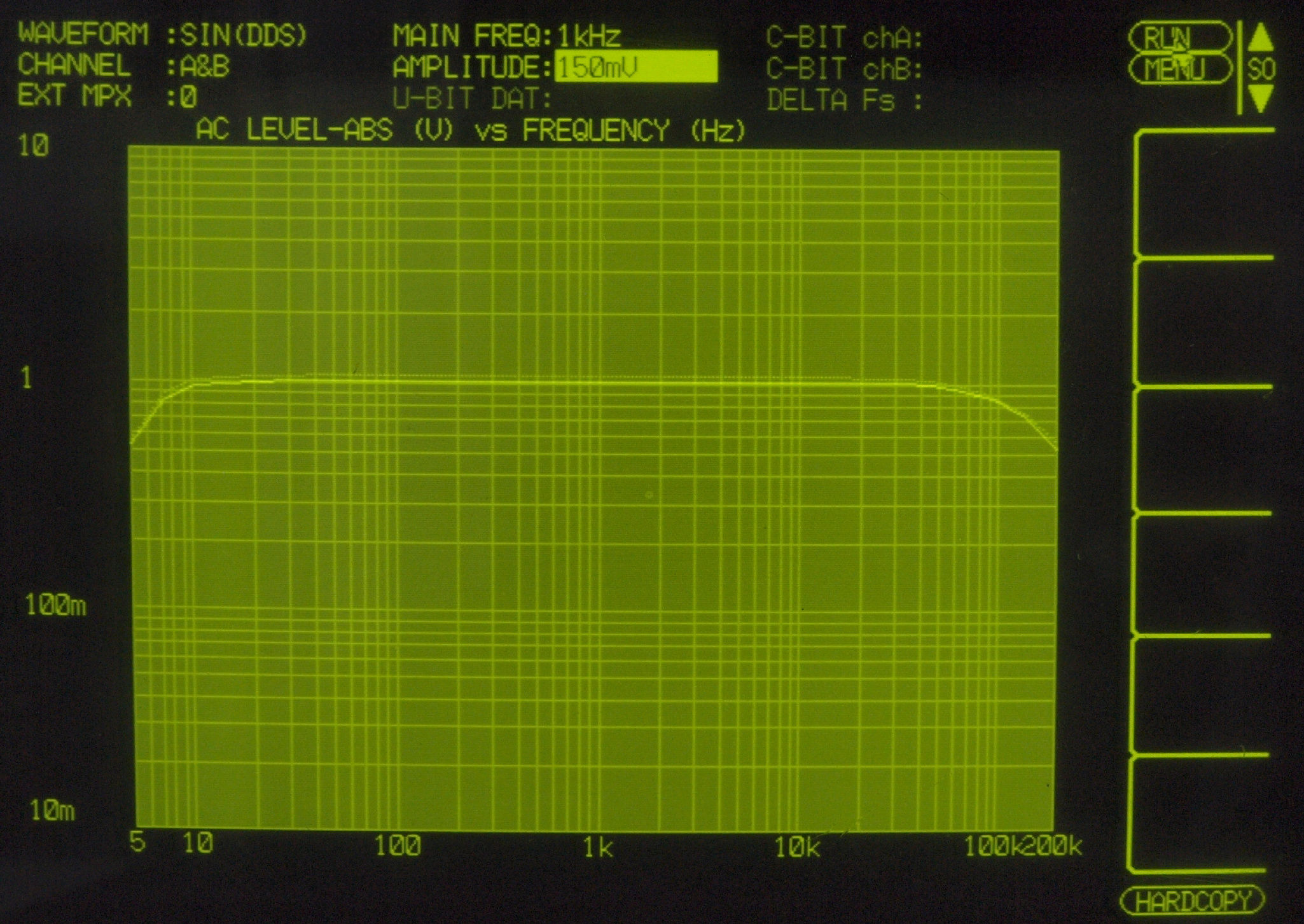 | F. 上位測定器による 調整・測定。 画像をクリックすると、大きく(横幅2050ドット)表示されます。 F0. 下のオーディオアナライザー VP−7732Aで自動測定 |