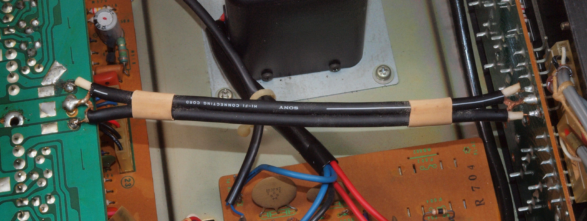 | A33. 点検中 上蓋を取り、上から見る。 RCA端子出力1のケーブルが最短距離に交換されている。 | ||||||||||||||||||||||||||||||||||||||||