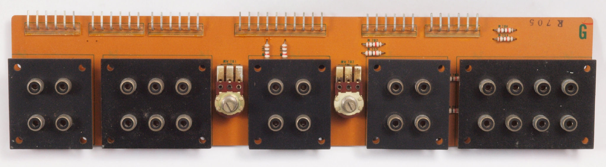 | C74. 修理(半田補正)後 入出力RCA端子郡基板裏。 テフロン絶縁RCA端子に交換し、半田を全部やり直す。 | ||||||||||||||||||||||||||||||||||||||||