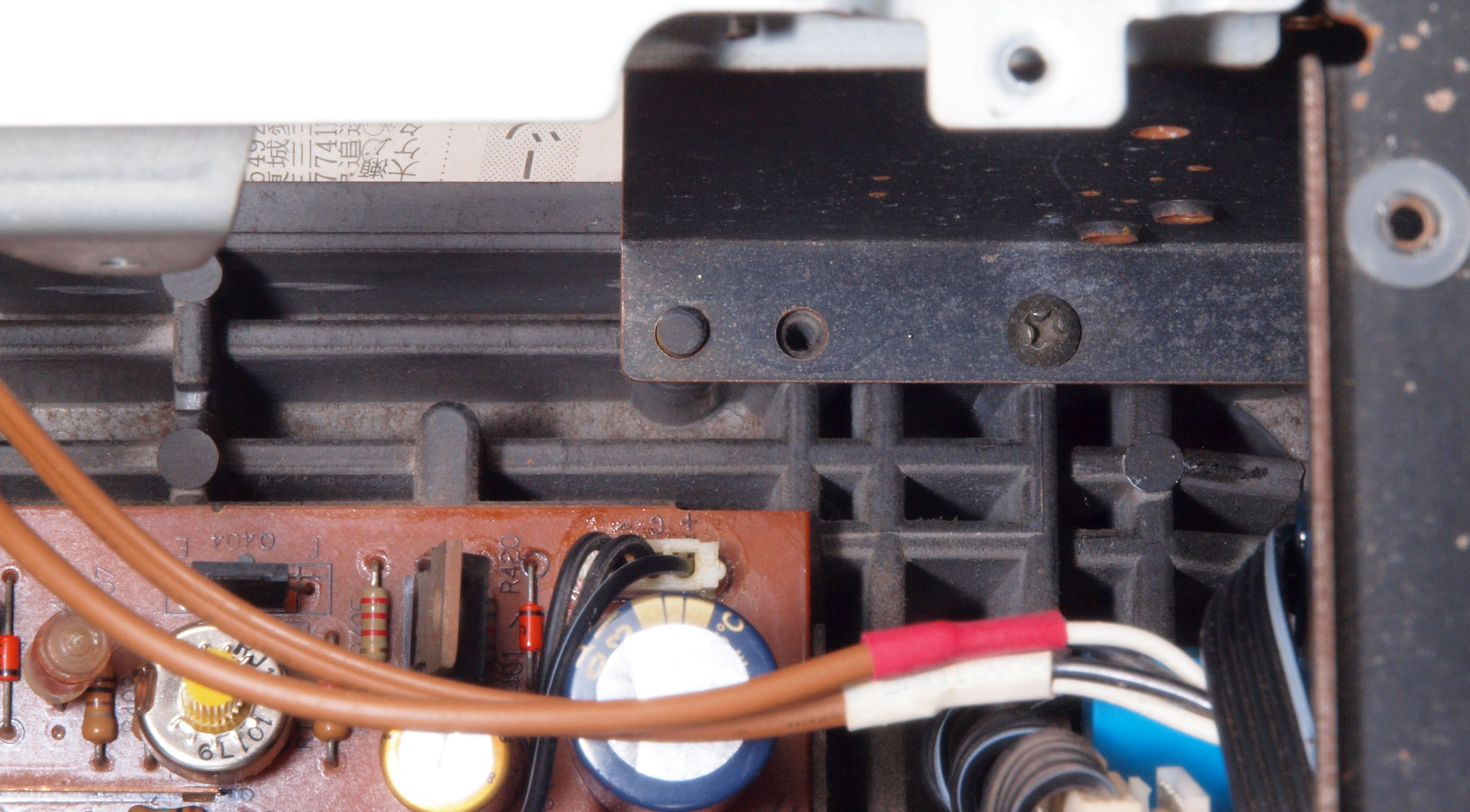 CN3. 修理後 上から、電解コンデンサー固定後。