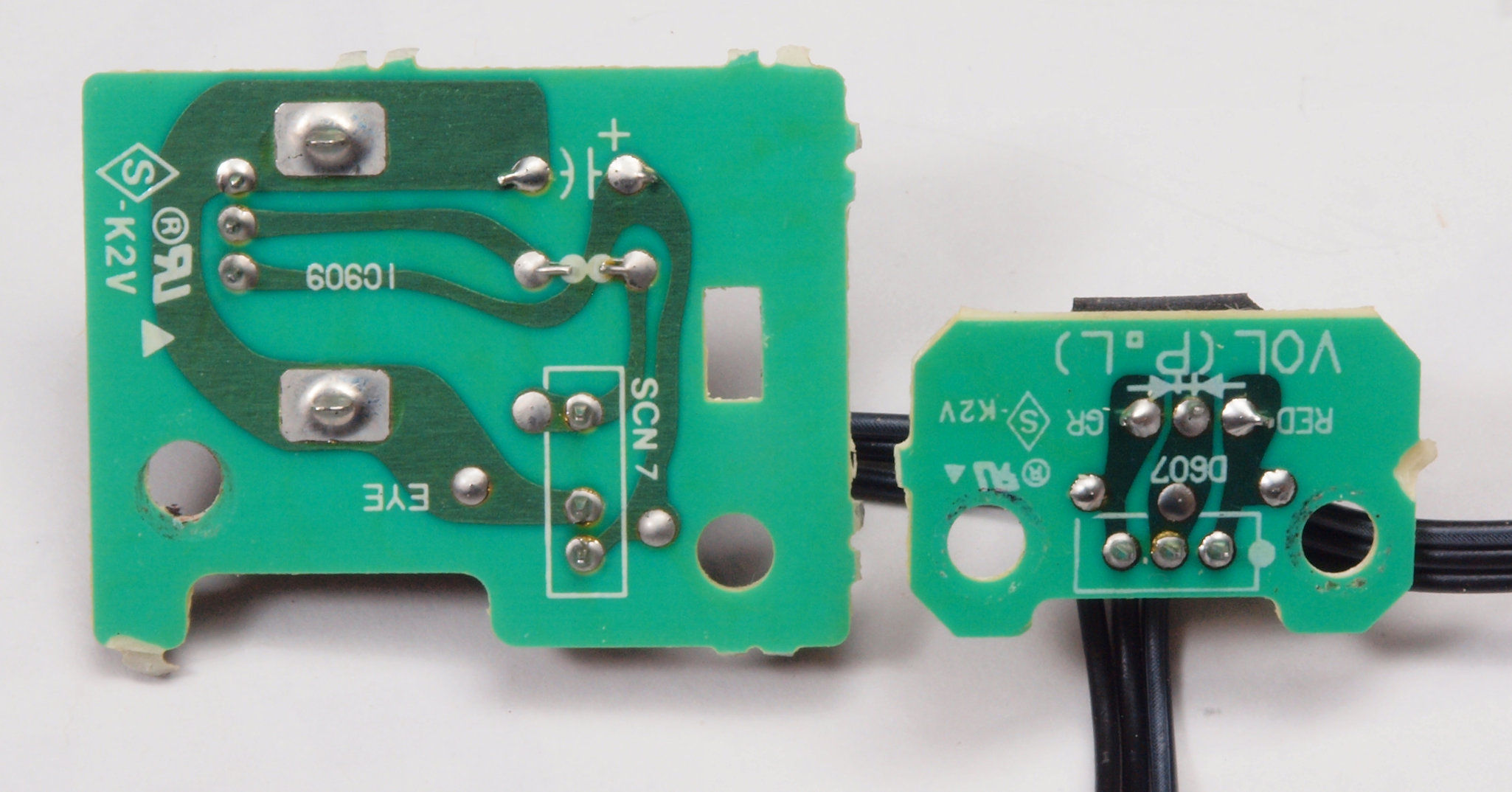 | CB2. 修理前 赤外線受光基板裏 & 電源表示LED基板裏。 | ||||||||||||||||||||||||||||||||||||