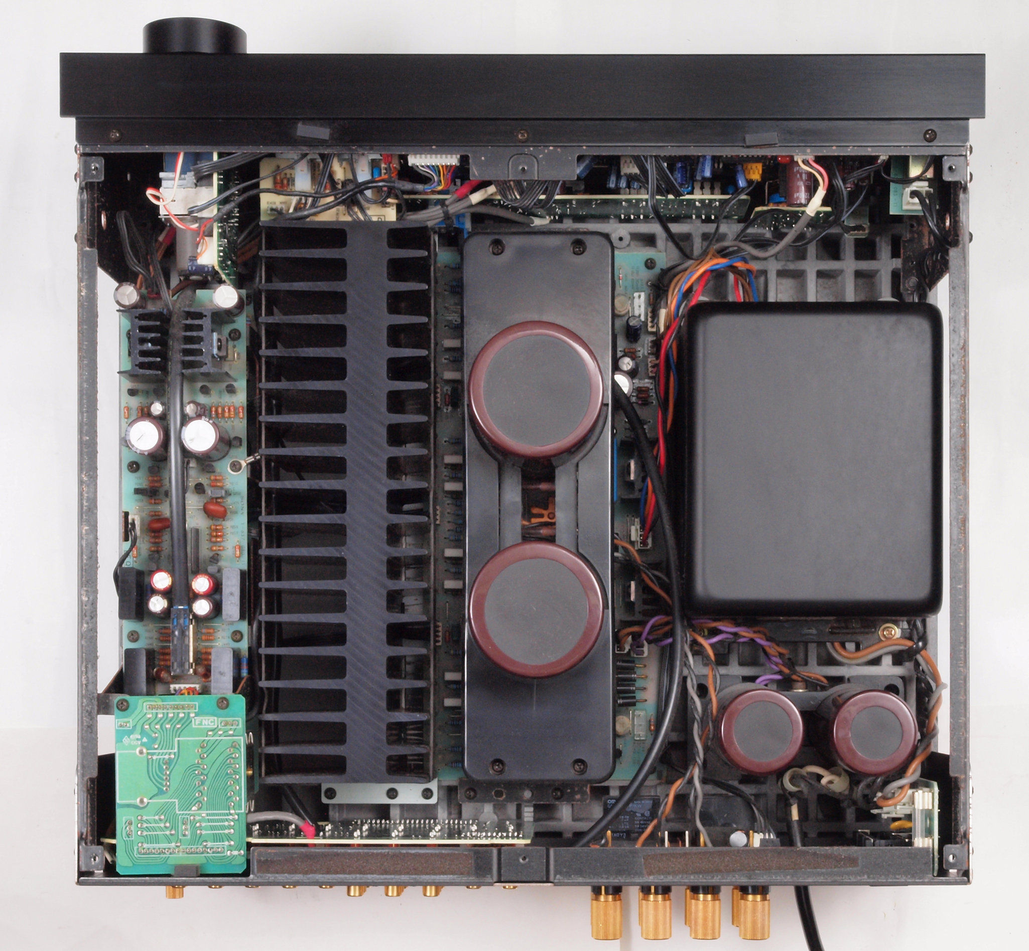 | C. 修理状況。 画像をクリックすると、大きく(横幅2050ドット)表示されます。 C1. 修理中 前パネル、基板を外したアコースティカリーチューンドGシャーシ(Acoustically Tuned Gibraltar Chassis)。 |