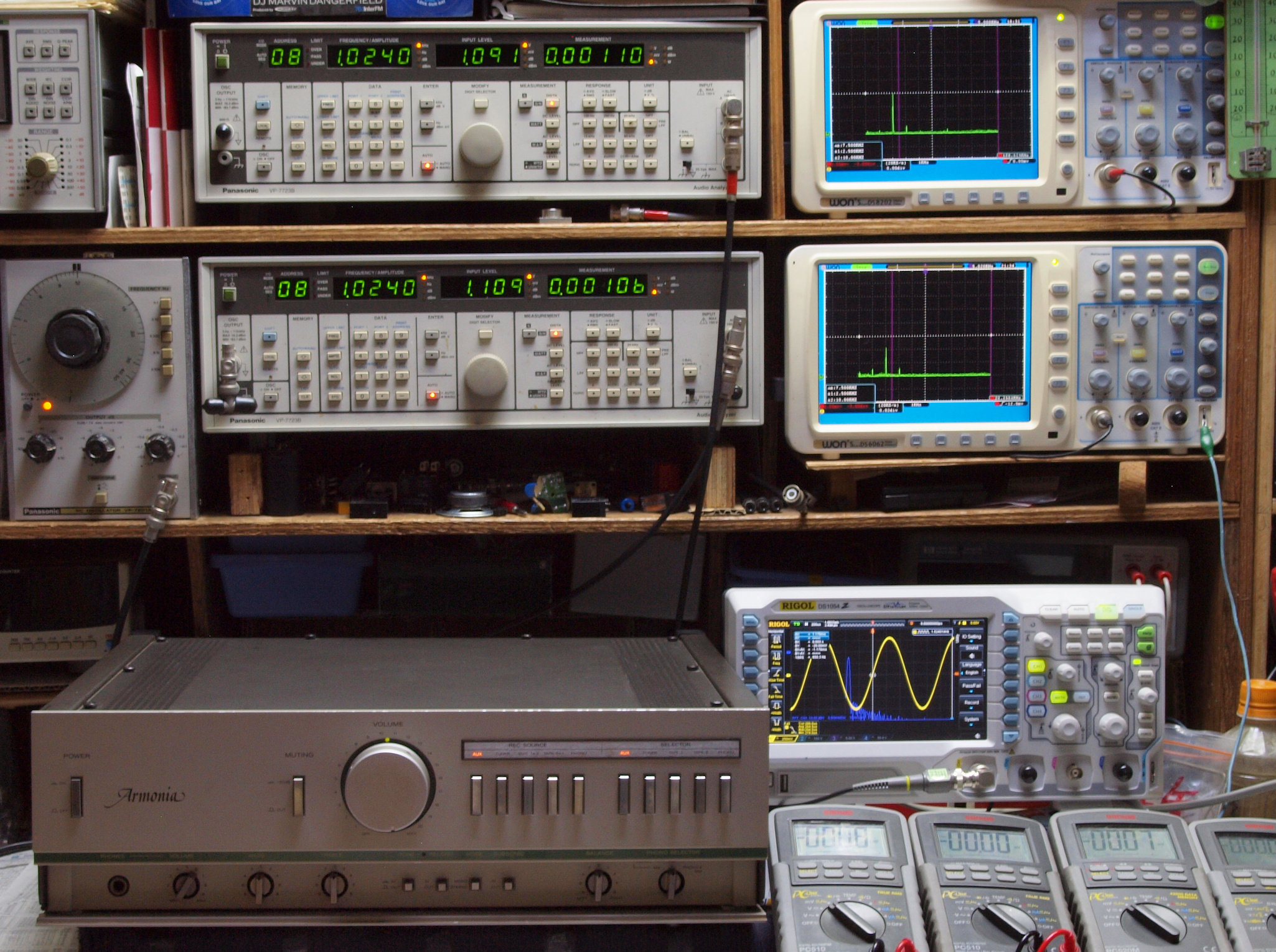 全高調波歪率 0.005%(20Hz〜20kHz、各入力Volume max、最大出力時)