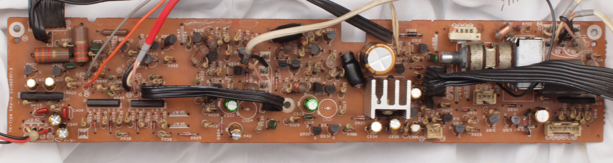 | C62. 修理後 電源 & Drive基板。電解コンデンサー12個、半固定VR6個、フィルムコンデンサー4個、TR(トランジスター)2個交換。 | ||||||||||||||||||||||||||||||||||||||||||||