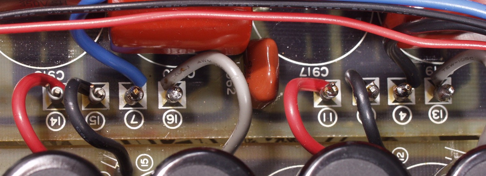 | C1D. 修理(ハンダ補正)後 AMP部裏 電解コンデンサー8個交換 | ||||||||||||||||||||||||||||||||