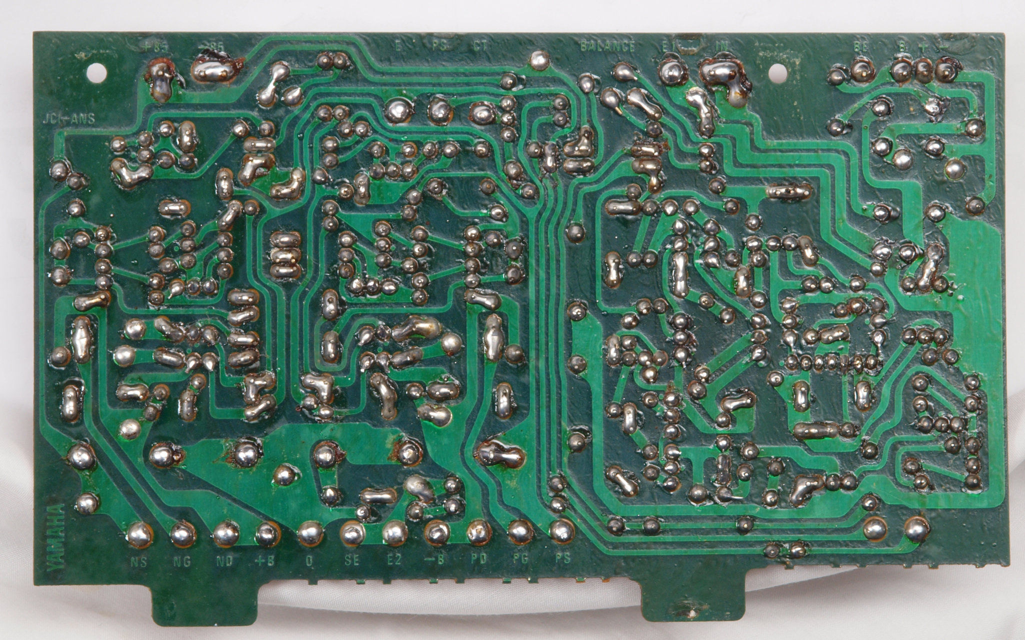 C19. 修理(半田補正)後 R側終段基板裏、半田を全部やり直す。