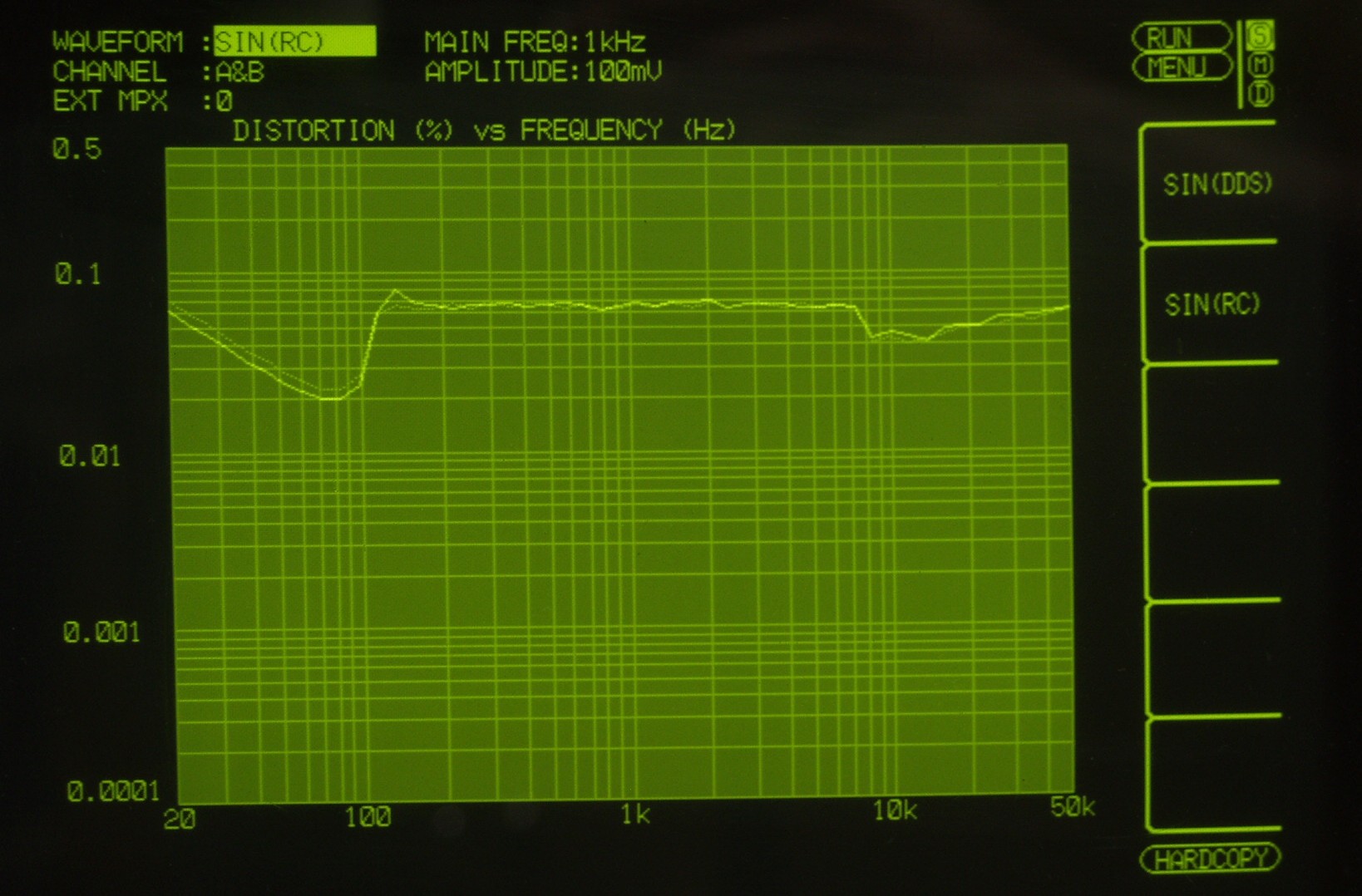 | T2A. 修理前出力・歪み測定中 出力0.6V 0.1%歪み率 AUX入力 400HZ。 | ||||||||||||||||||||||||