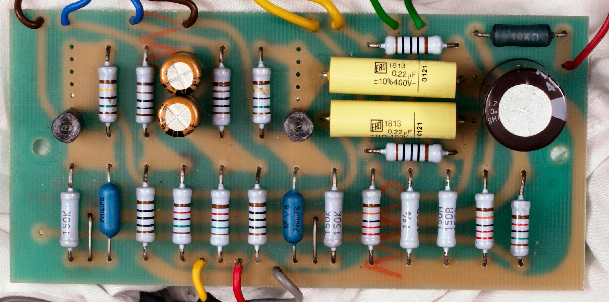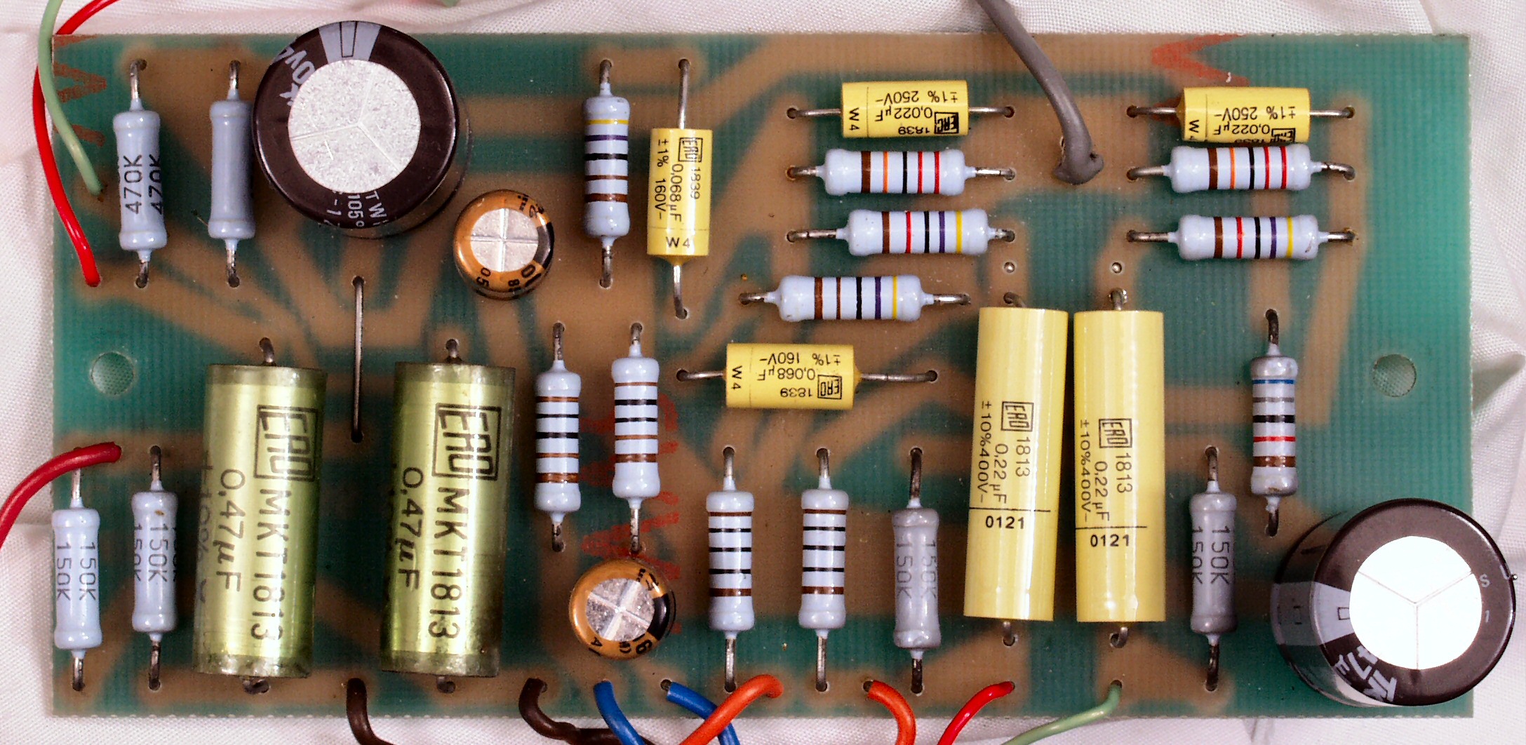 | C−1B. 修理後 ヒーター整流・メインAMP 抵抗4個、電解コンデンサー6個交換 |