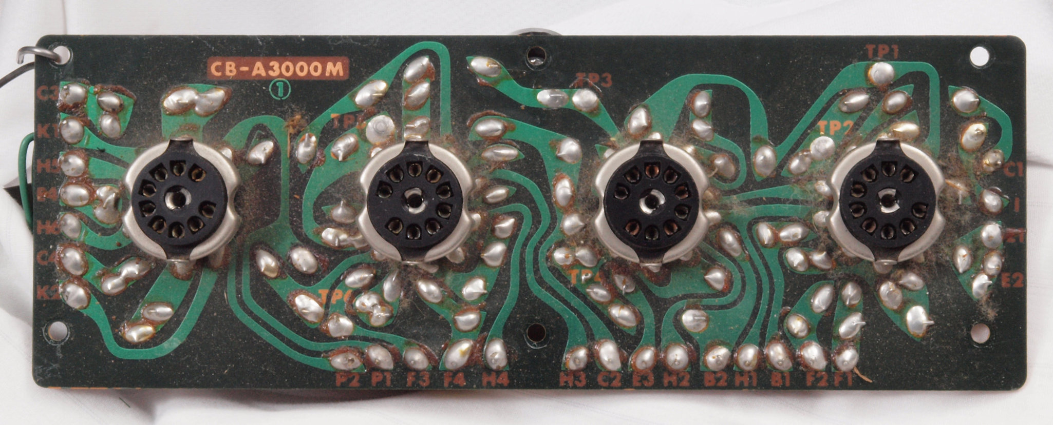 | C12. 修理中 前段AMP基板。真空管ソケットを外し、洗浄後。 | ||||||||||||||||||||||||